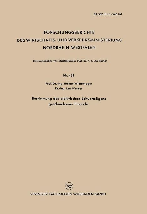 Helmut Winterhager: Bestimmung des elektrischen Leitvermögens geschmolzener Fluoride, Kartoniert / Broschiert