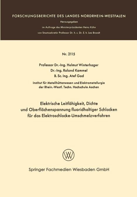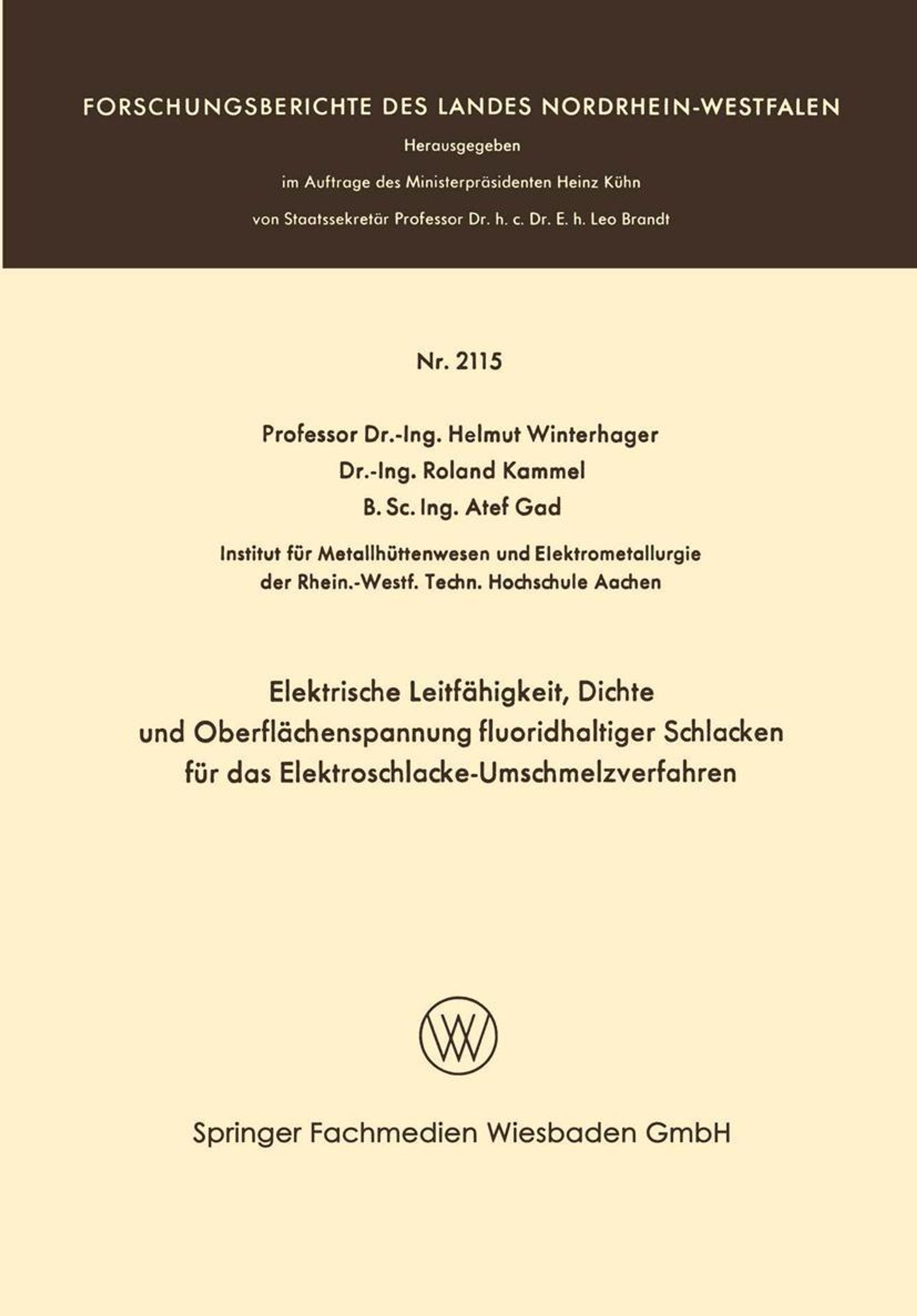 Helmut Winterhager: Elektrische Leitfähigkeit, Dichte und Oberflächenspannung fluoridhaltiger Schlakken für das..., Kartoniert / Broschiert