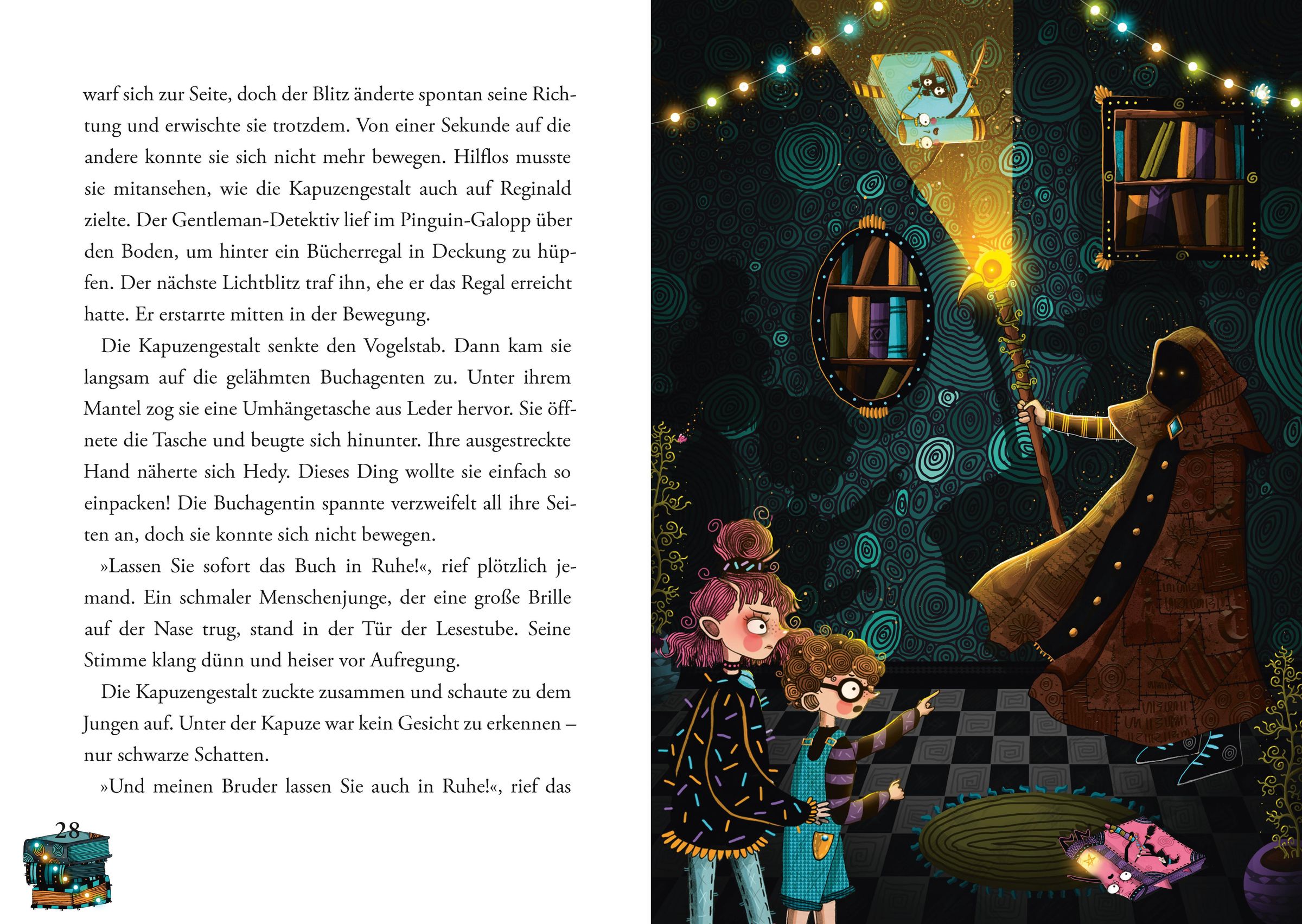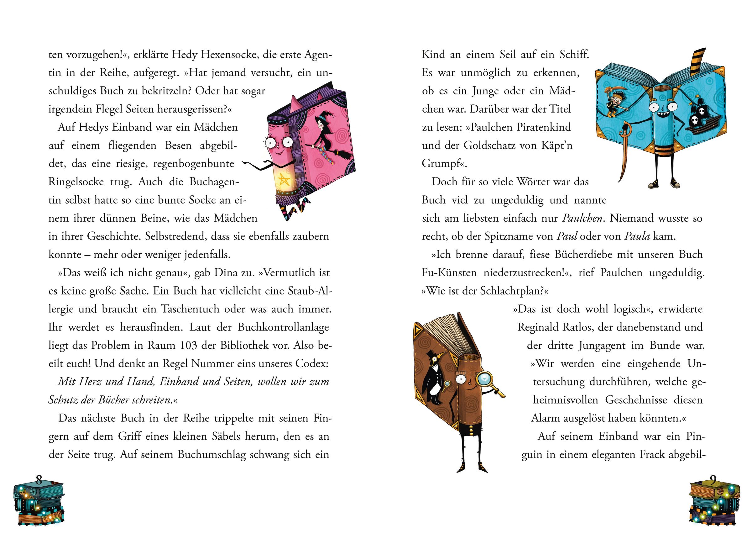 Sie leben unerkannt in den Regalen von Bibliotheken und Buchhandlungen: die Buchagenten! Es sind lebendige Bücher, die sprechen und sogar laufen können. Von ihrem Hauptquartier, einem alten Antiquariat, aus wachen sie über ihre schlafenden Buchgeschwister und beschützen die Bücherwelt vor jeder kleinsten Gefahr. Doch eine ungeahnte Bedrohung sucht die Buchheit heim: Der geheimnisvolle "Zensor" treibt sein Unwesen und liest immer mehr Bücher leer. Und dann wird auch noch das Oberhaupt der Buchagenten, Tabula Smaragdina, entführt! Nun ist es an drei chaotischen Jung-Buchagenten, Smaragdina und sämtliche Bücher auf der Welt vor dem Vergessenwerden zu retten!