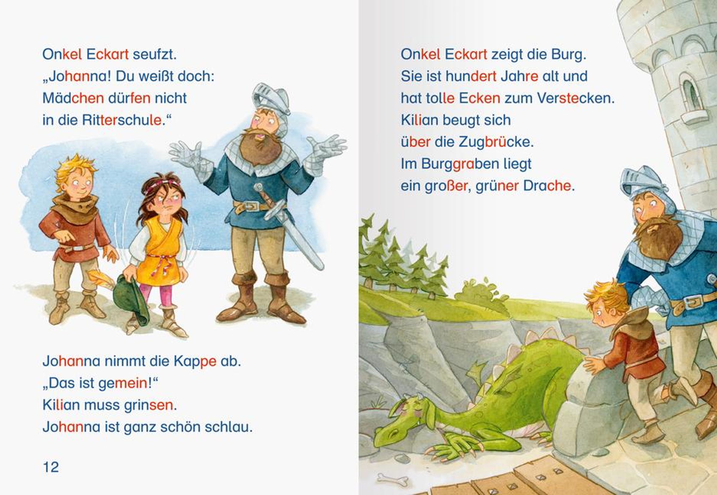 Kilian ist glücklich: Er darf bei seinem Onkel Eckart zur Ritterschule gehen. Bei seinen Streifzügen durch die Burg trifft er Johanna, die sich versteckt: Für Mädchen ist die Schule nämlich nicht erlaubt. Als eines Tages der Rote Ritter die Burg angreifen will, kann die tapfere Johanna beweisen, was in ihr steckt: Gemeinsam mit Kilian und dem Zuckerwatte speienden Drachen verteidigt sie die Ritterburg!