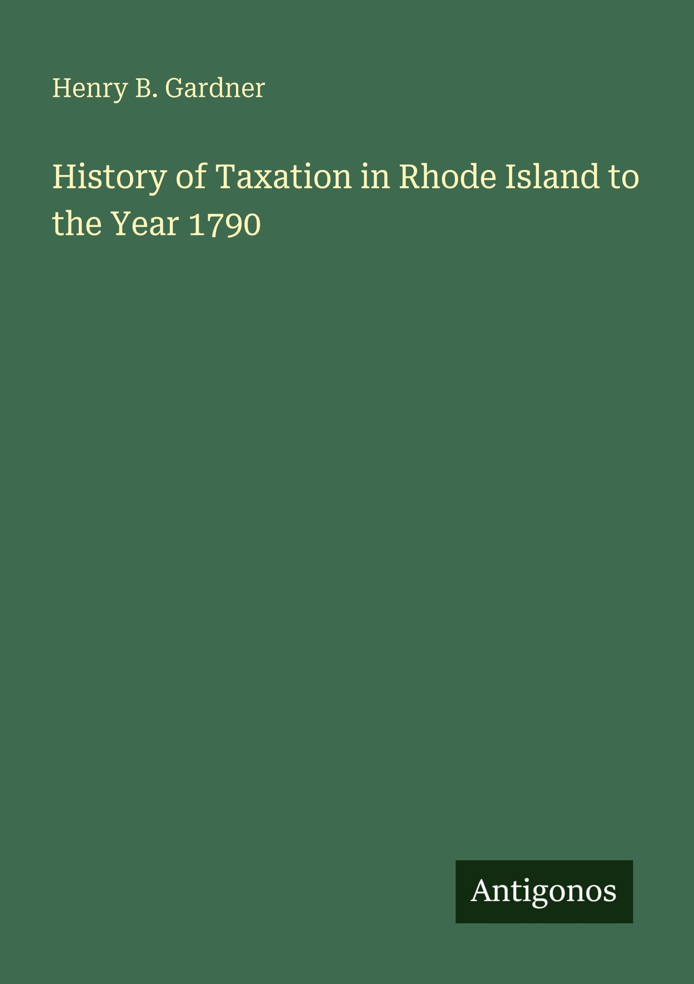 Henry B. Gardner: History of Taxation in Rhode Island to the Year 1790, Kartoniert / Broschiert