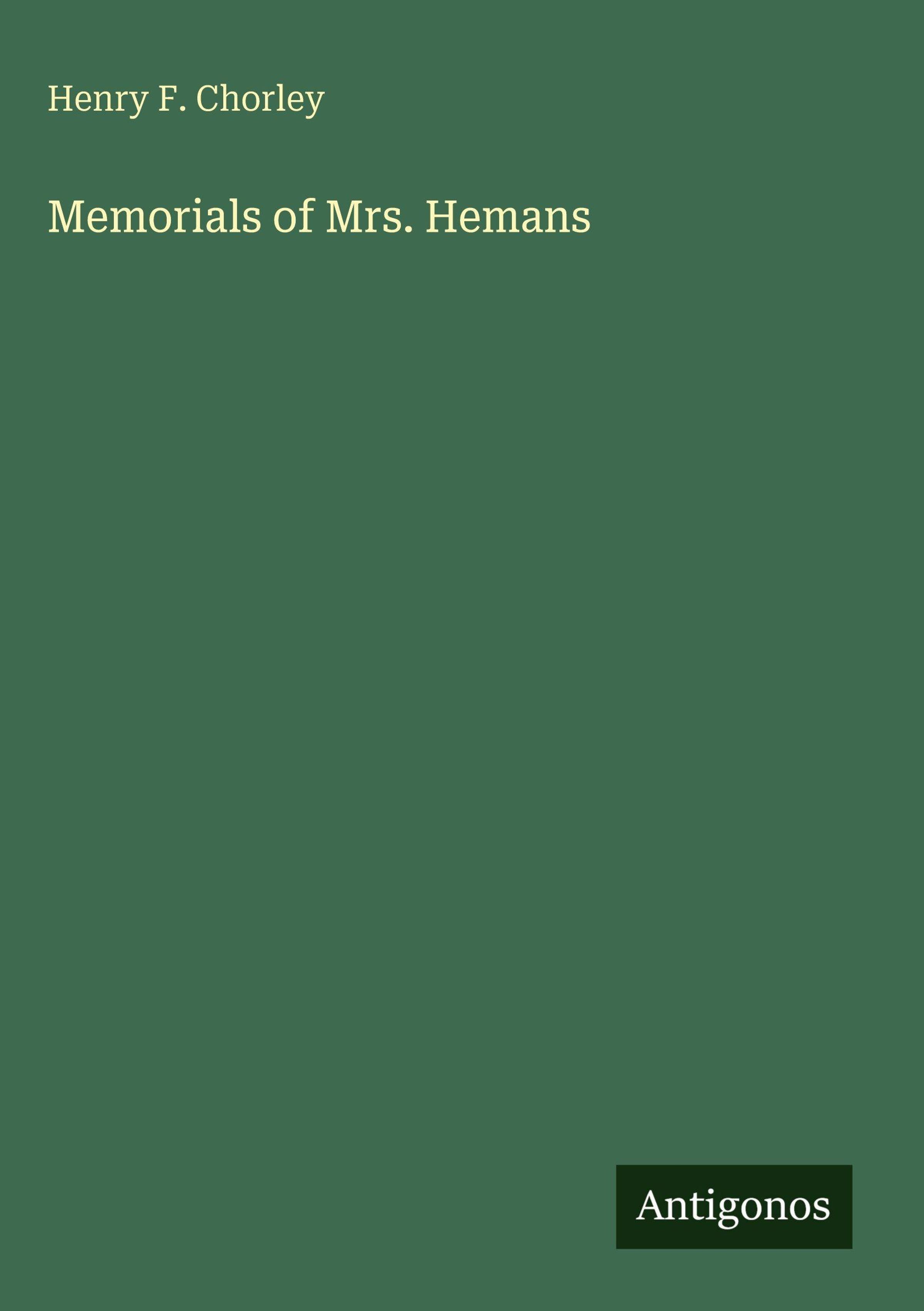 Henry F. Chorley: Memorials of Mrs. Hemans, Buch