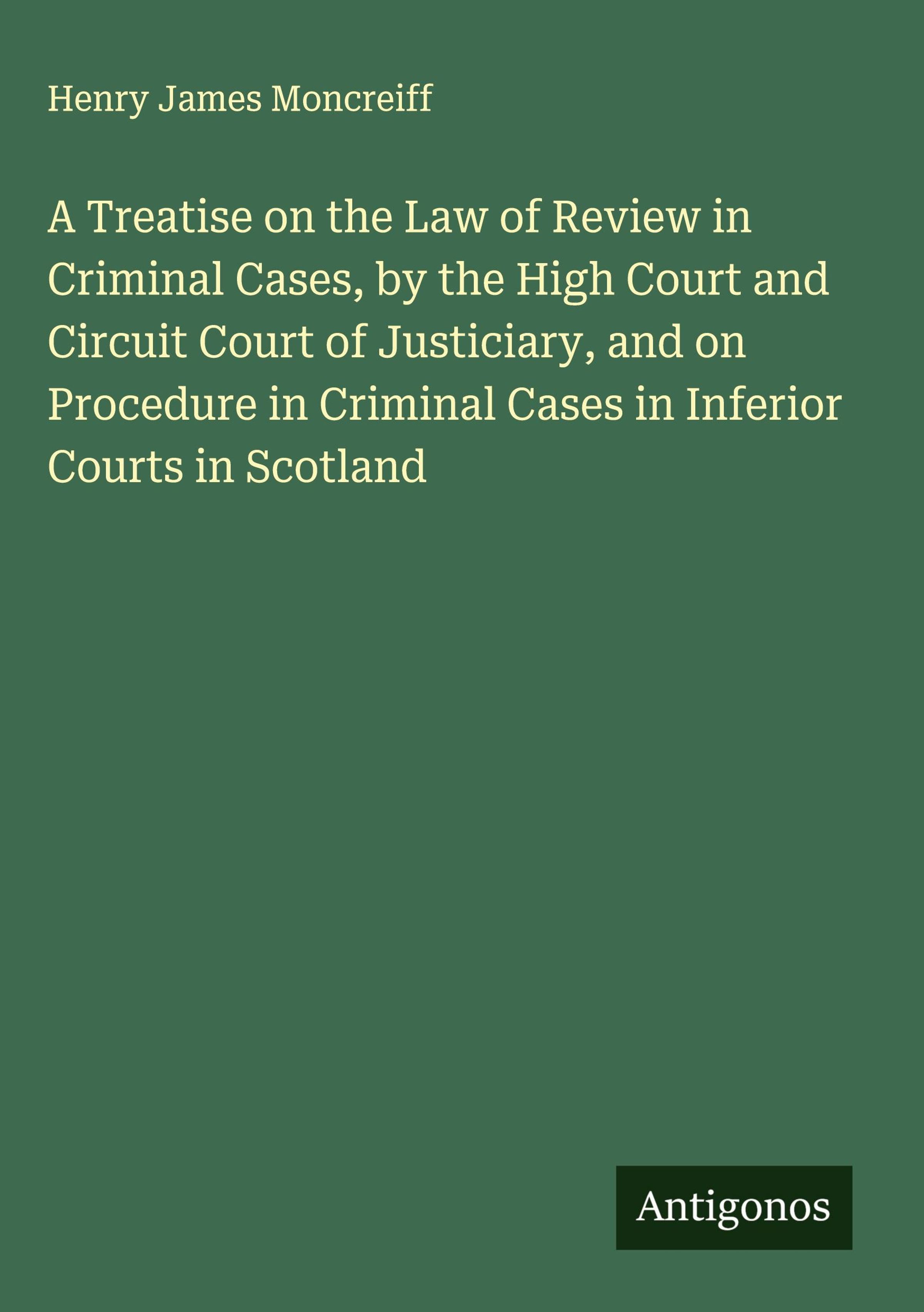 A Treatise on the Law of Review in Criminal Cases, by the High Court and Circuit Court of Justiciary, and on Procedure in Criminal Cases in Inferior Courts in Scotland