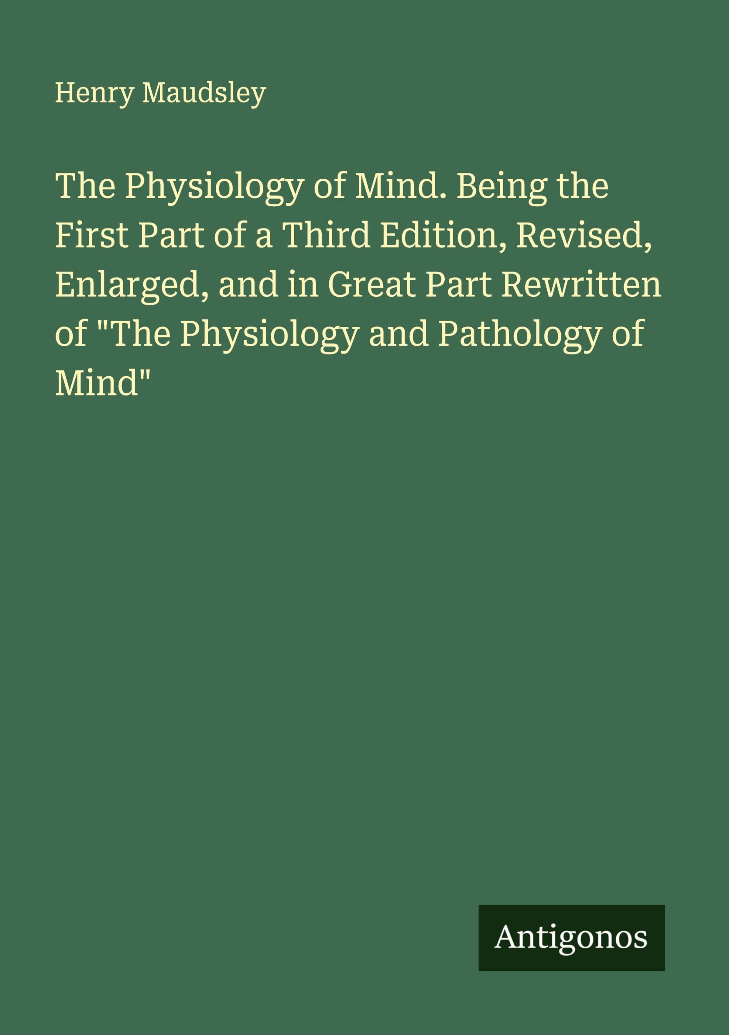 The Physiology of Mind. Being the First Part of a Third Edition, Revised, Enlarged, and in Great Part Rewritten of "The Physiology and Pathology of Mind"