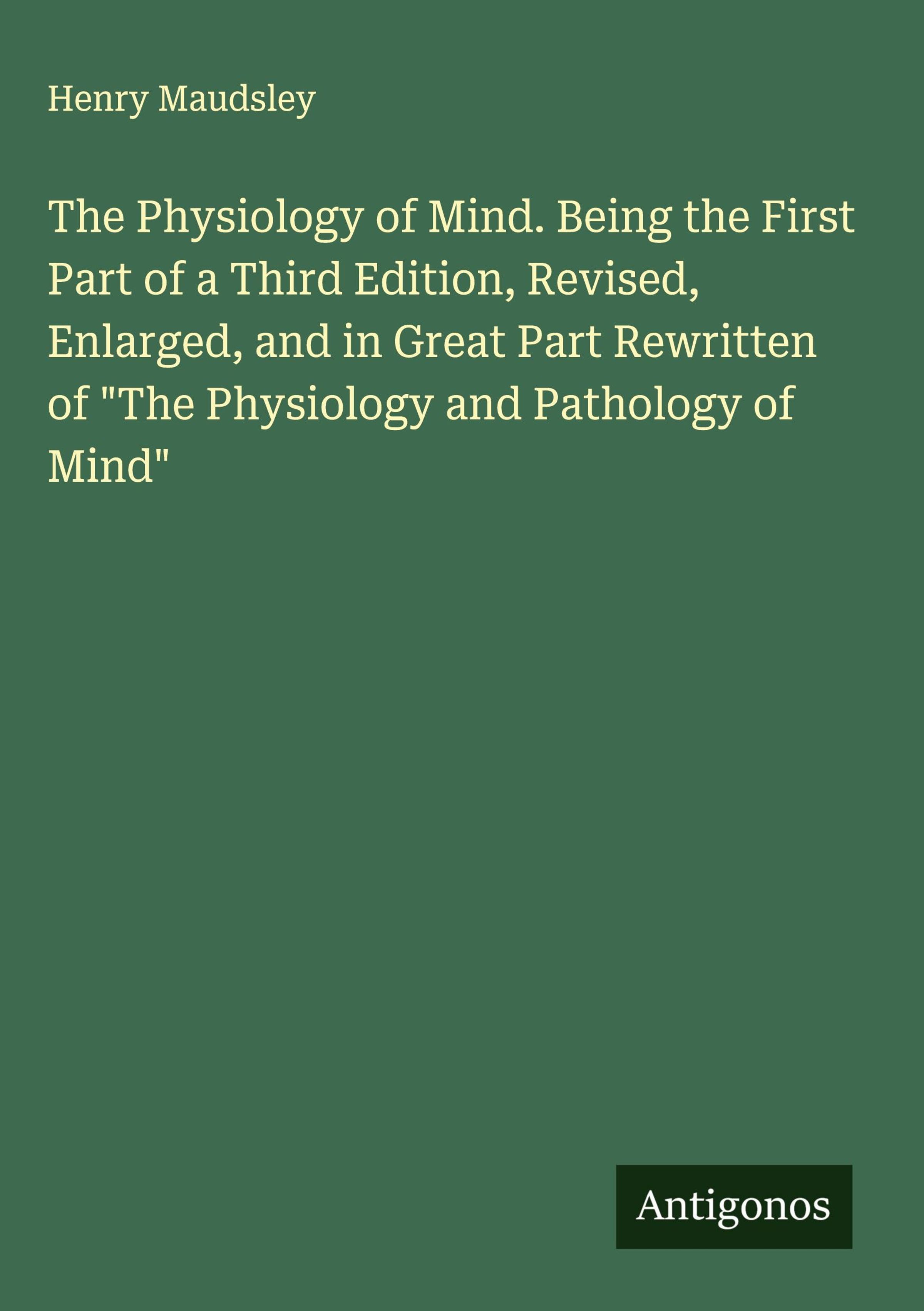 The Physiology of Mind. Being the First Part of a Third Edition, Revised, Enlarged, and in Great Part Rewritten of "The Physiology and Pathology of Mind"