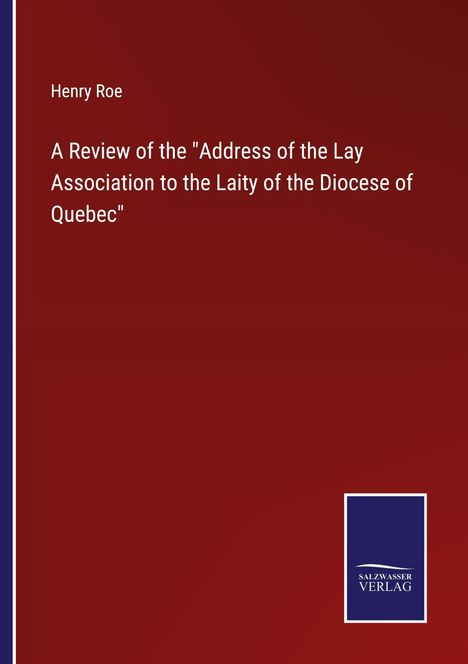 Henry Roe: A Review of the "Address of the Lay Association to the Laity of the Diocese of Quebec", Kartoniert / Broschiert