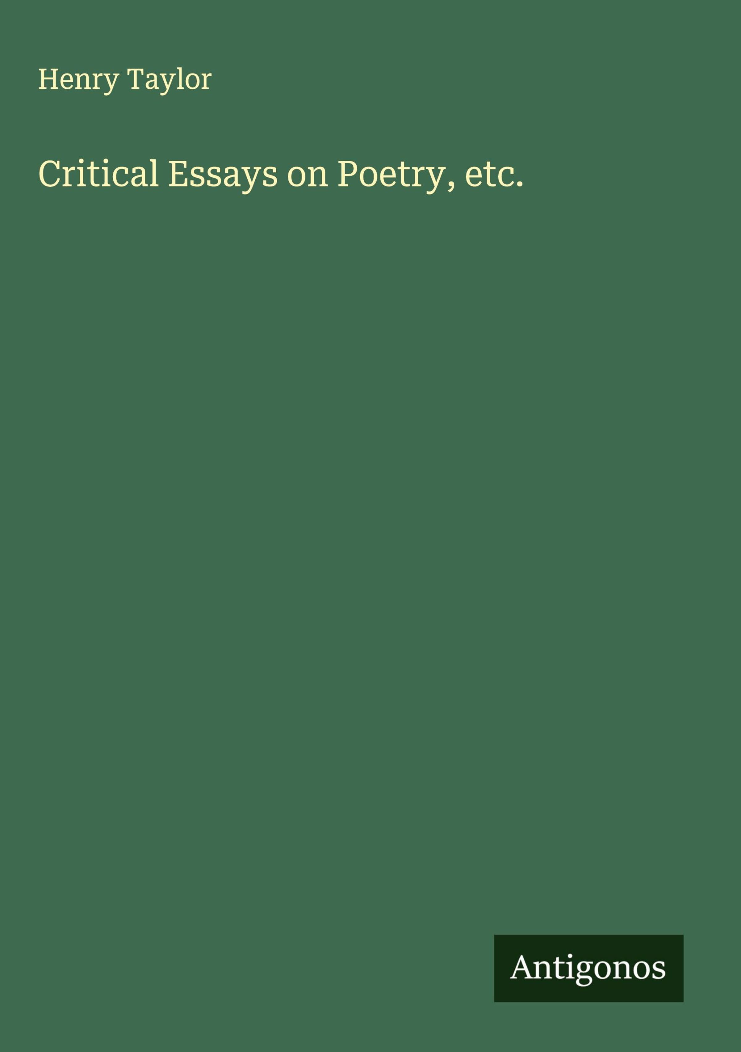 Henry Taylor: Critical Essays on Poetry, etc., Gebunden