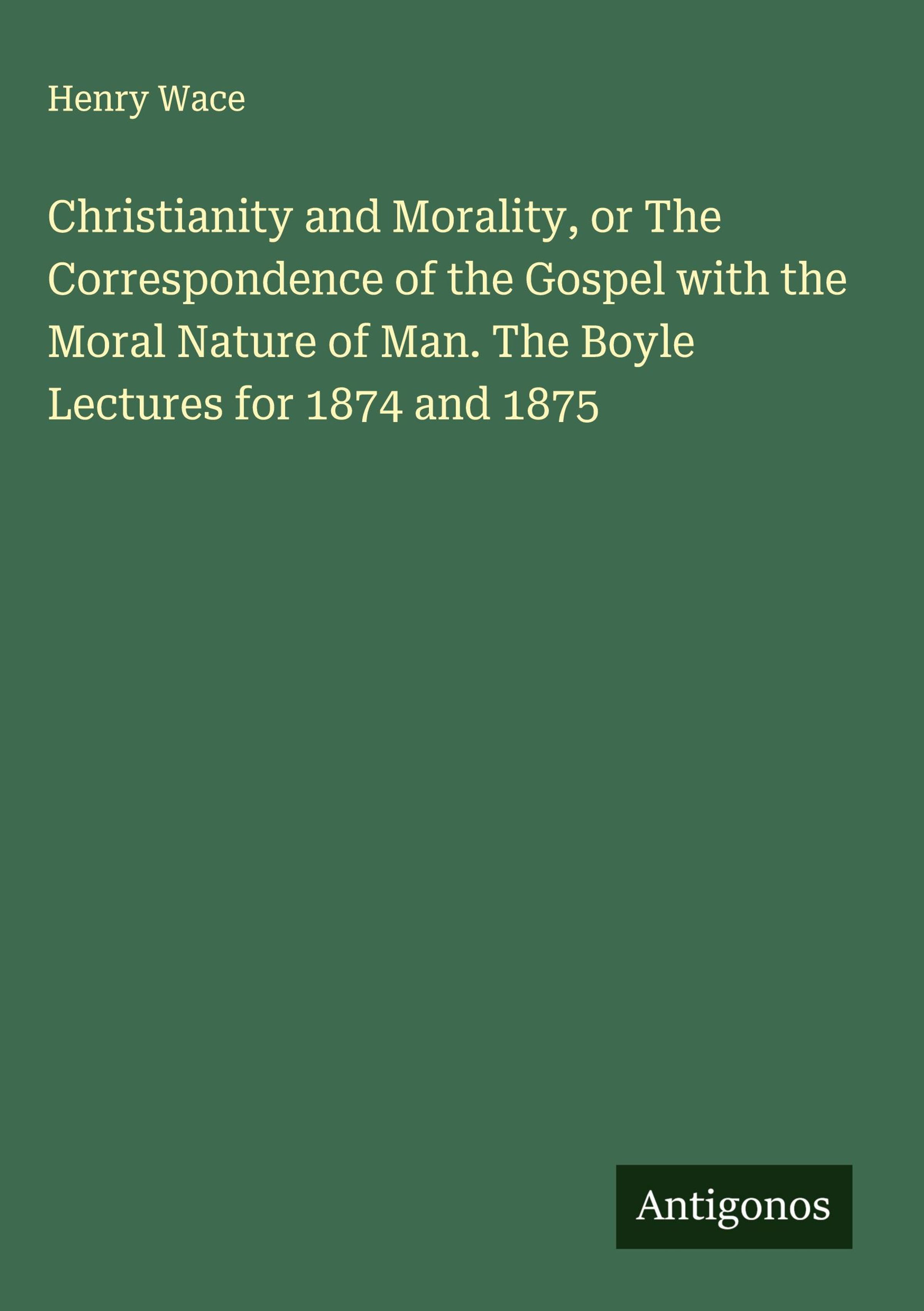 Christianity and Morality, or The Correspondence of the Gospel with the Moral Nature of Man. The Boyle Lectures for 1874 and 1875