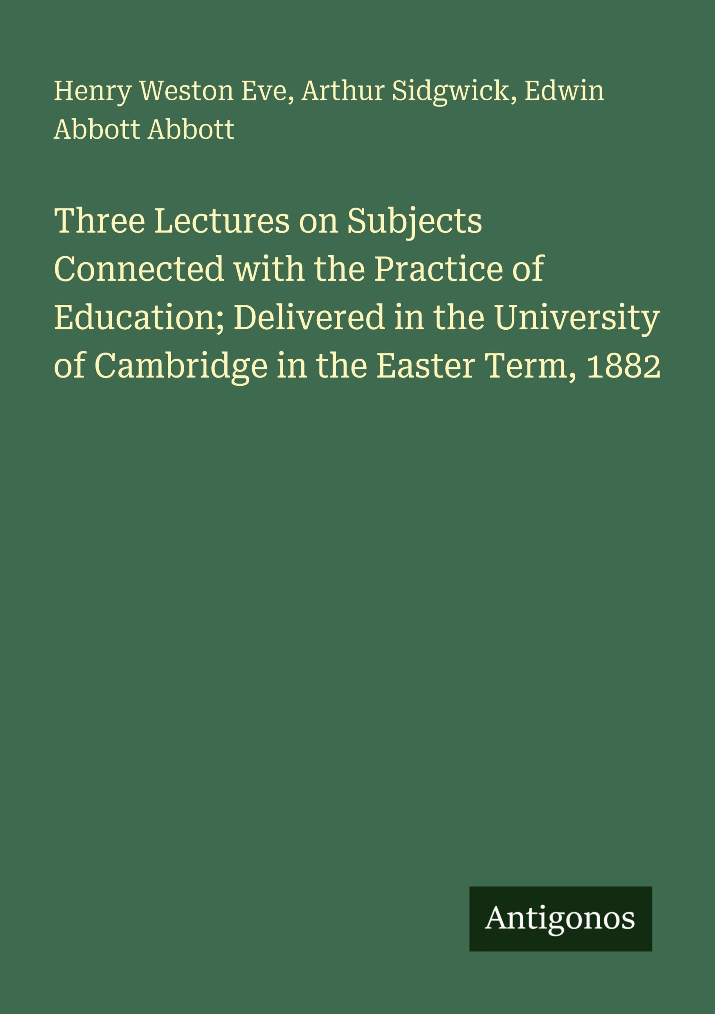 Three Lectures on Subjects Connected with the Practice of Education; Delivered in the University of Cambridge in the Easter Term, 1882