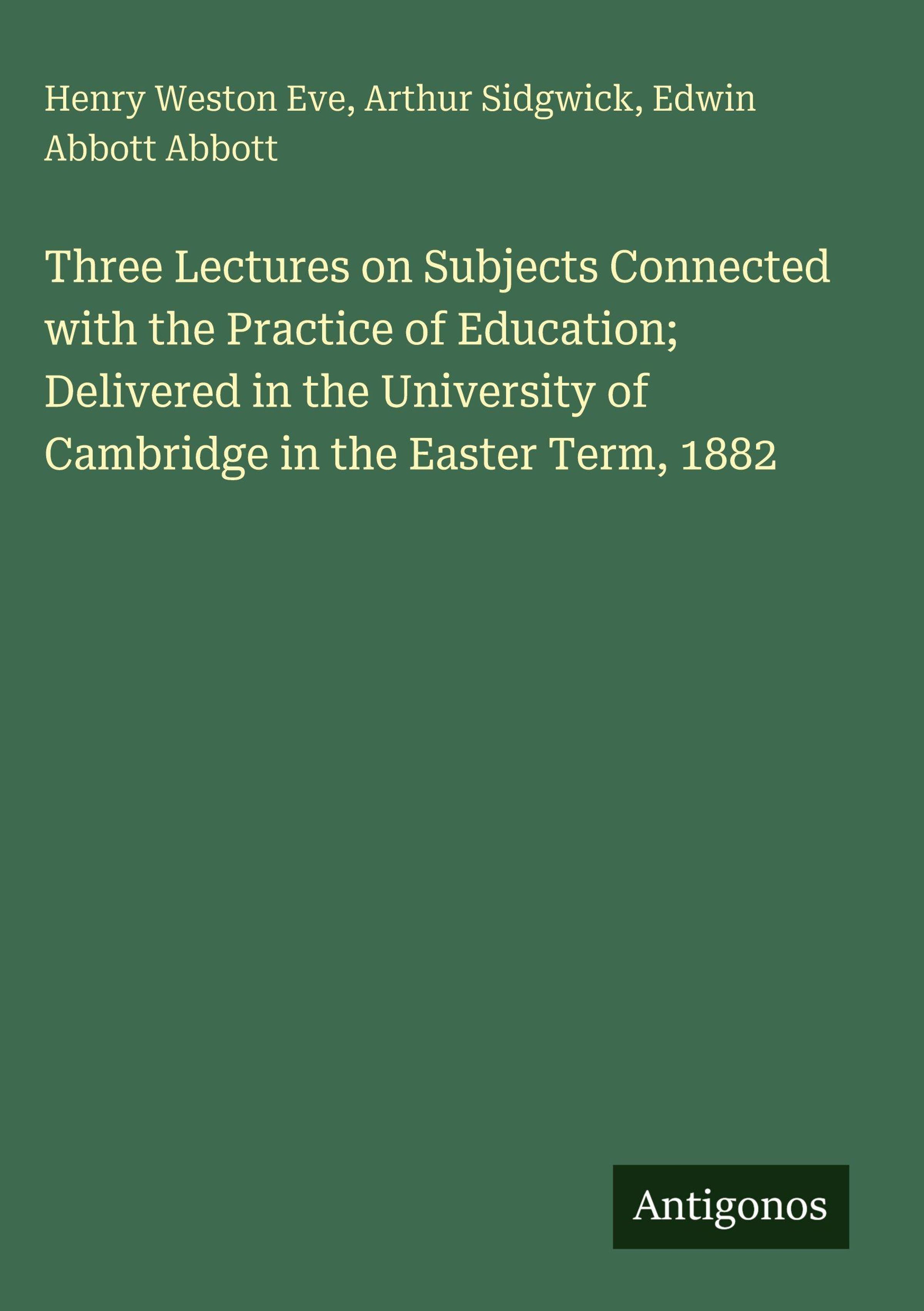 Henry Weston Eve: Three Lectures on Subjects Connected with the Practice of Education; Delivered in the..., Gebunden