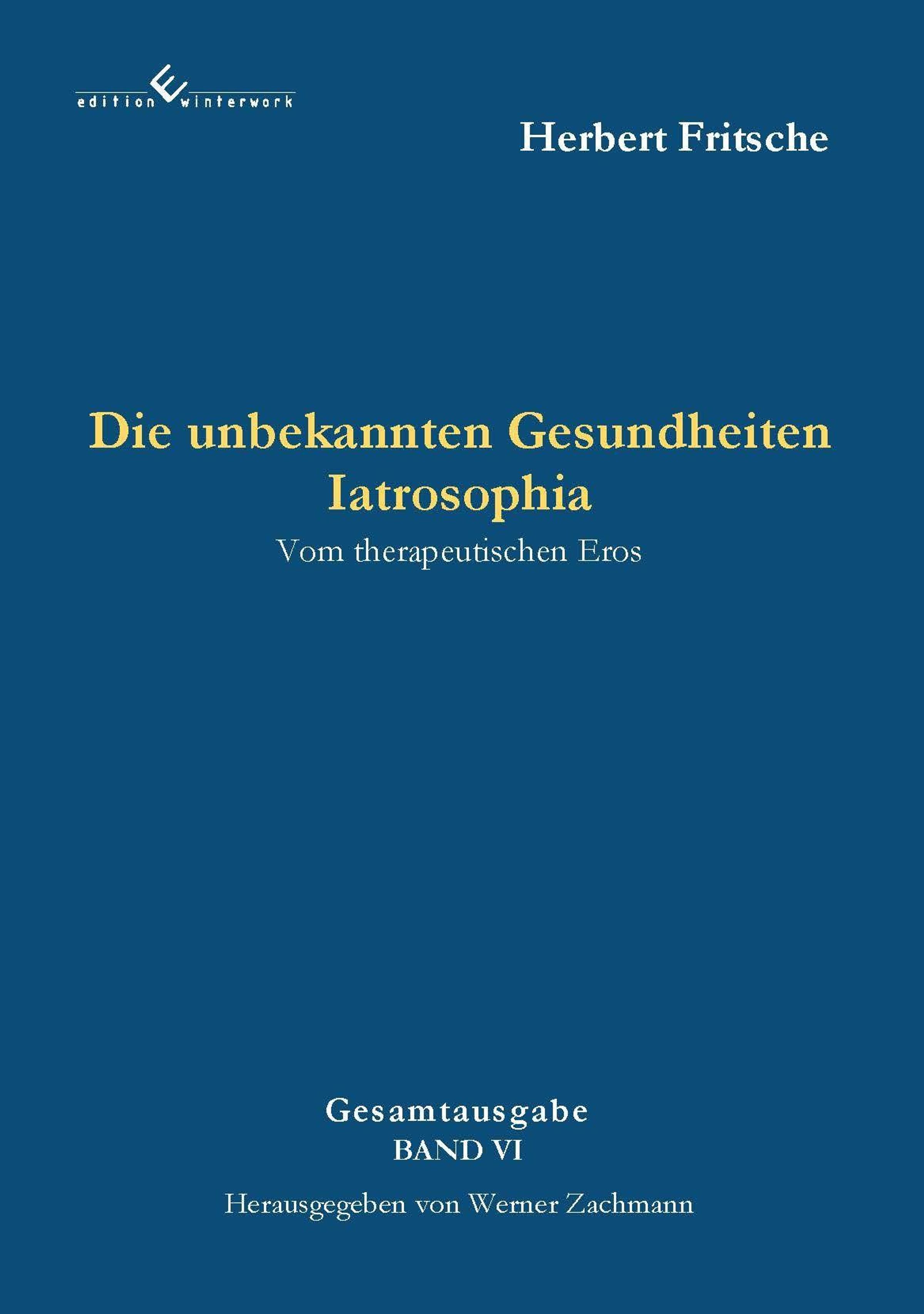 "Die unbekannten Gesundheiten Iatrosophia" von Herbert Fritsche, herausgegeben von Werner Zachmann. Ein schlichtes, blaues Design., Buch
