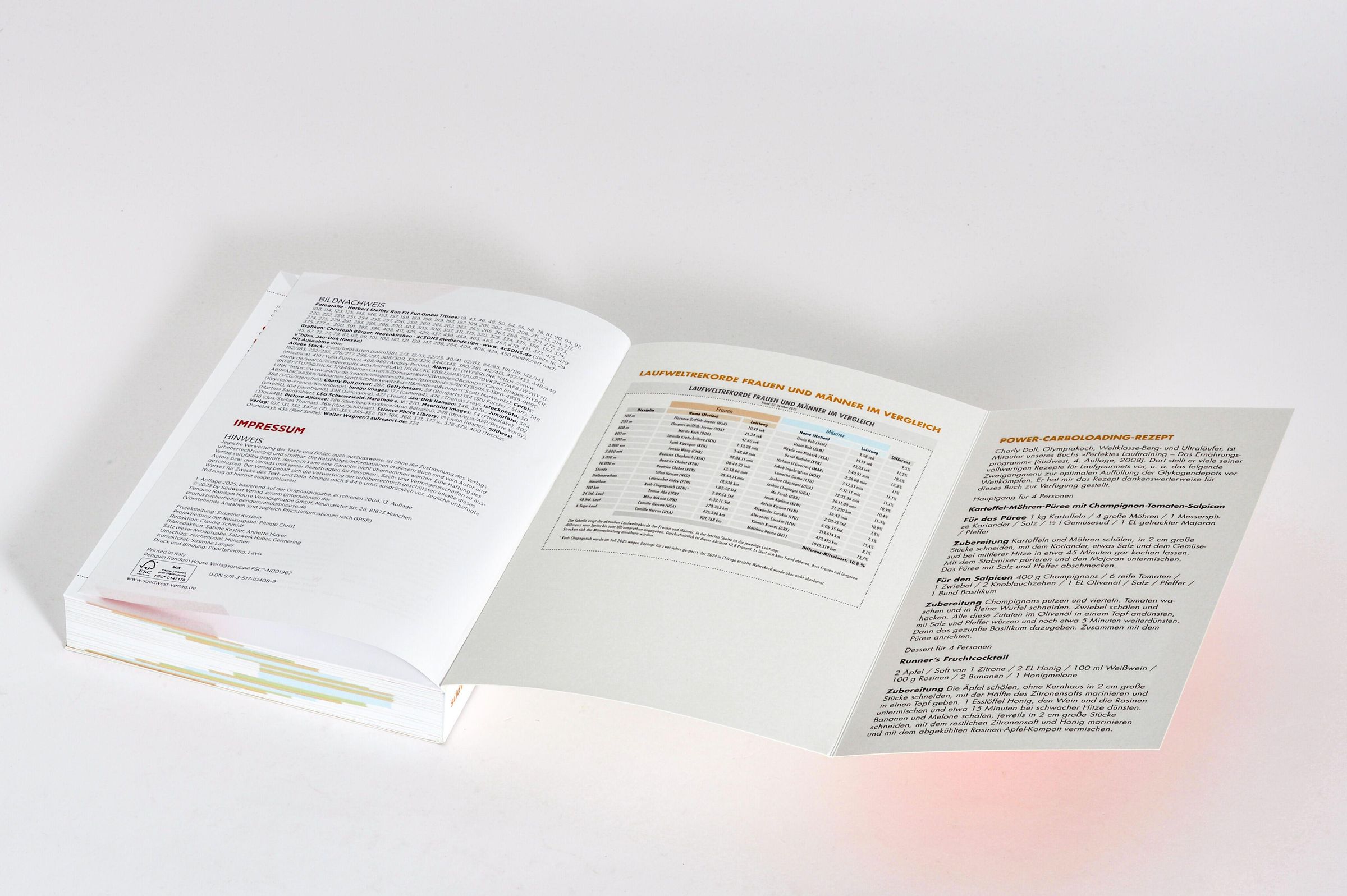 >Ergänzt wird das Buch durch Motivationstipps , Ratschläge wie man typische Läuferverletzungen vermeiden und behandeln kann, Hinweise zur richtigen Wettkämpfer-Ernährung und Tipps zum Abnehmendurch Laufen.