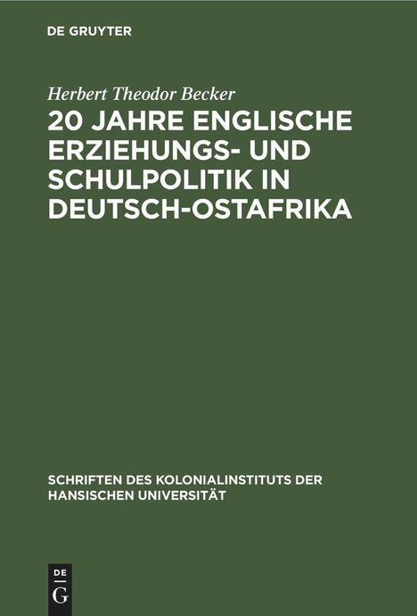 Herbert Theodor Becker: 20 Jahre englische Erziehungs- und Schulpolitik in Deutsch-Ostafrika, Gebunden