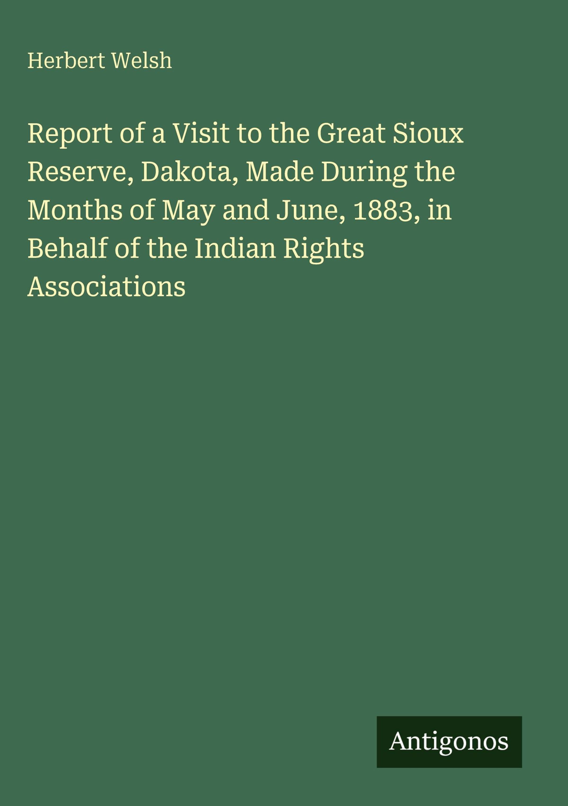 Herbert Welsh: Report of a Visit to the Great Sioux Reserve, Dakota, Made During the Months of May and June,..., Gebunden