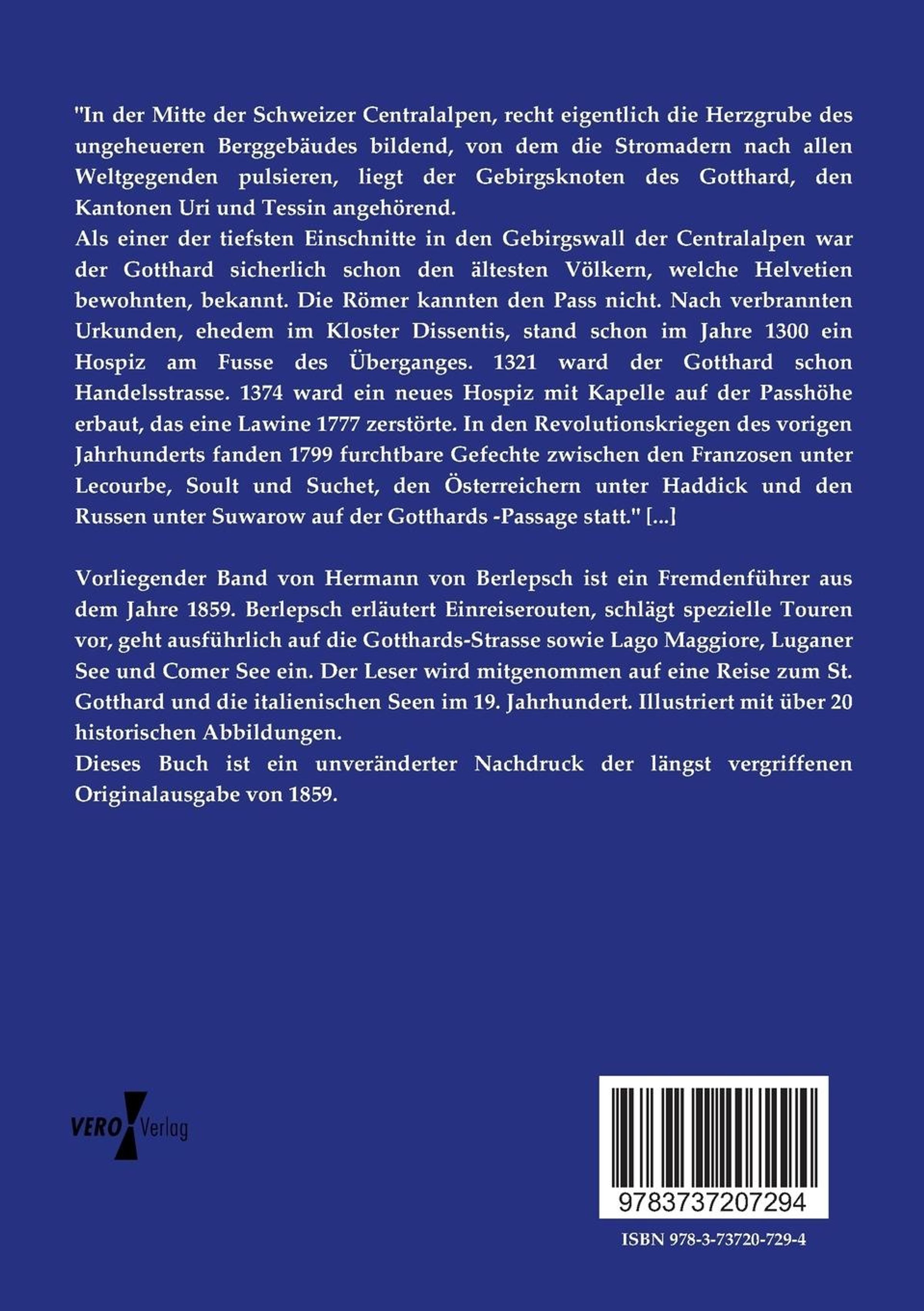 Vorliegender Band von Hermann von Berlepsch ist ein Fremdenführer aus dem Jahre 1859. Berlepsch erläutert Einreiserouten, schlägt spezielle Touren vor, geht ausführlich auf die Gotthards-Strasse sowie Lago Maggiore, Luganer See und Comer See ein. Der Leser wird mitgenommen auf eine Reise zum St. Gotthard und die italienischen Seen im 19. Jahrhundert. Illustriert mit über 20 historischen Abbildungen. Dieses Buch ist ein unveränderter Nachdruck der längst vergriffenen Originalausgabe von 1859.