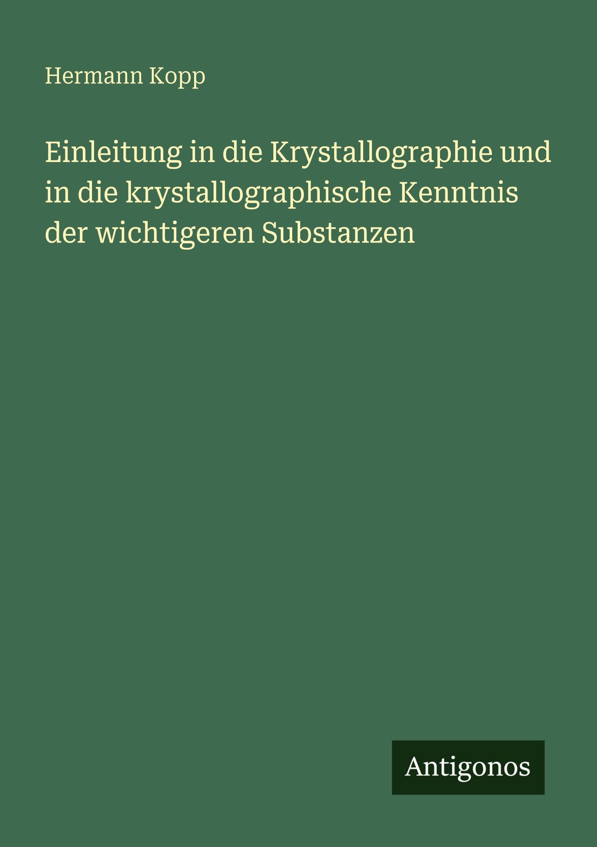 Der Artikel Hermann Kopp: Einleitung in die Krystallographie und in die krystallographische Kenntnis der wichtigeren Substanzen wurde in den Warenkorb gelegt.