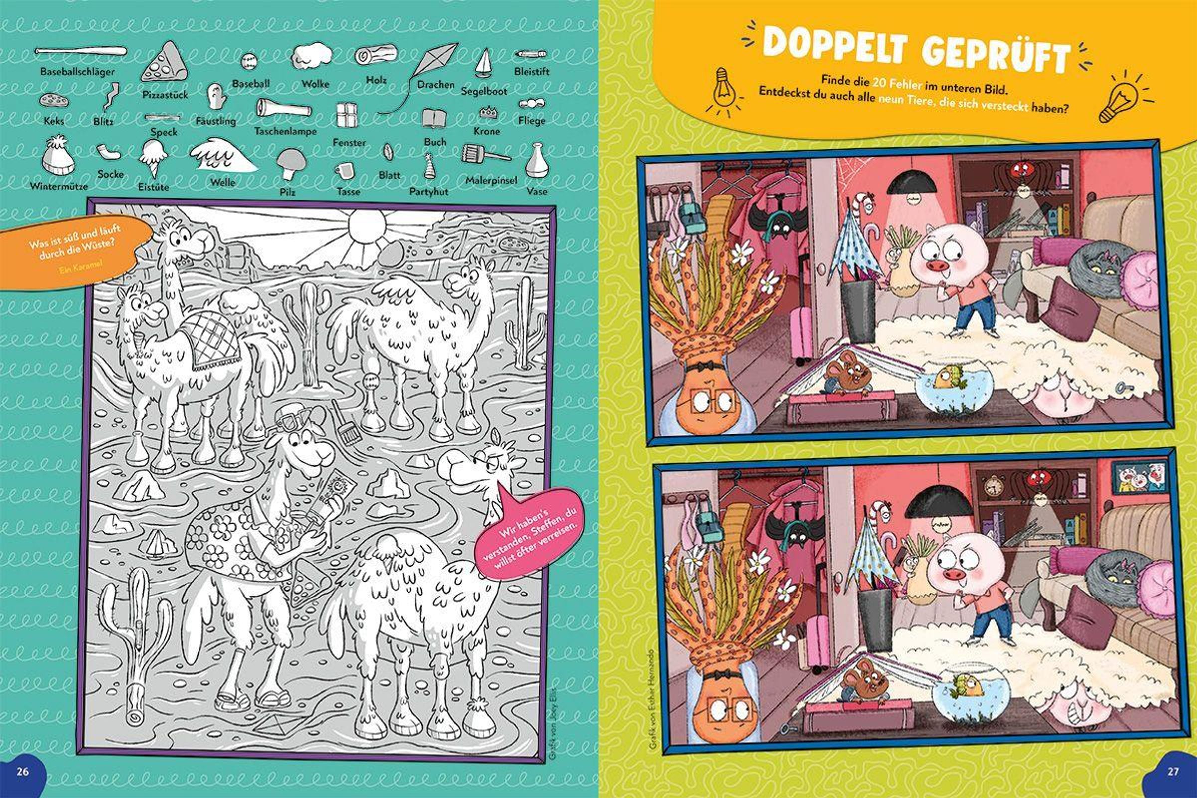 - lustige Lückentexte, Zungenbrecher und viele weitere Rätsel für abwechslungsreichen Spaß