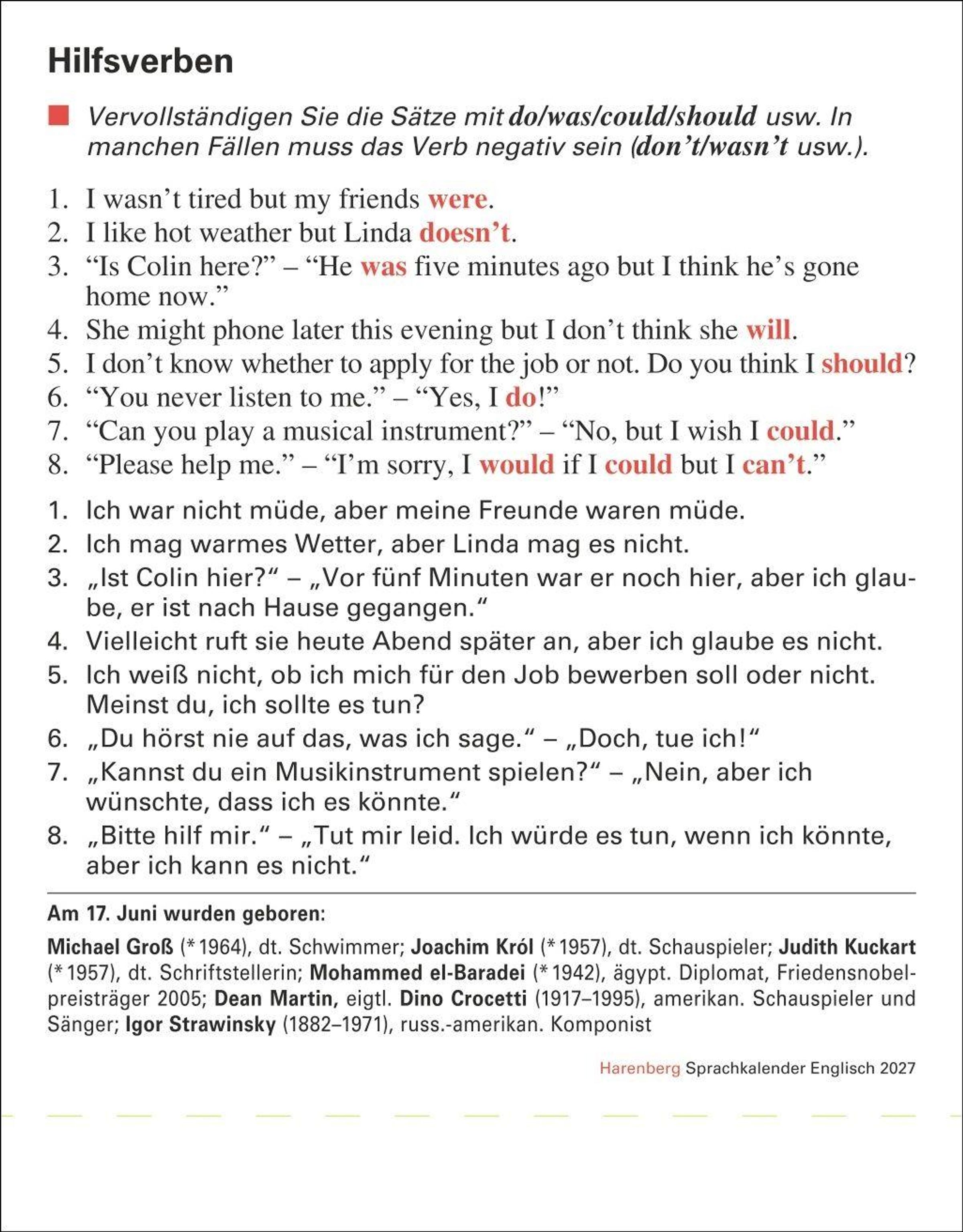 - In nur 10 Minuten täglich Grundkenntnisse verbessern mit dem Tischkalender zum Aufstellen. Tages-Kalender mit kurzen Englischlektionen. Auch zum Aufhängen