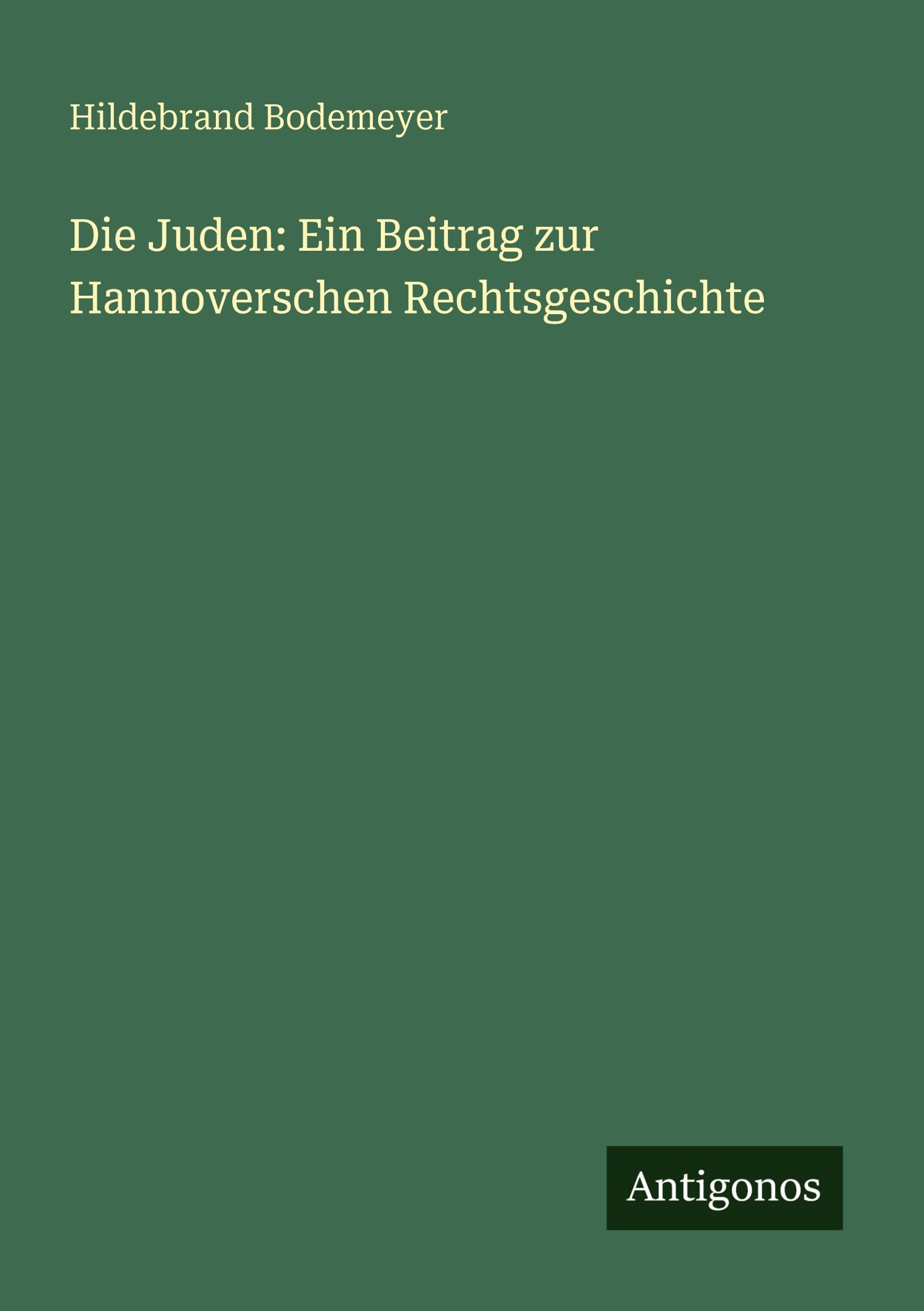 Hildebrand Bodemeyer: Die Juden: Ein Beitrag zur Hannoverschen Rechtsgeschichte, Kartoniert / Broschiert