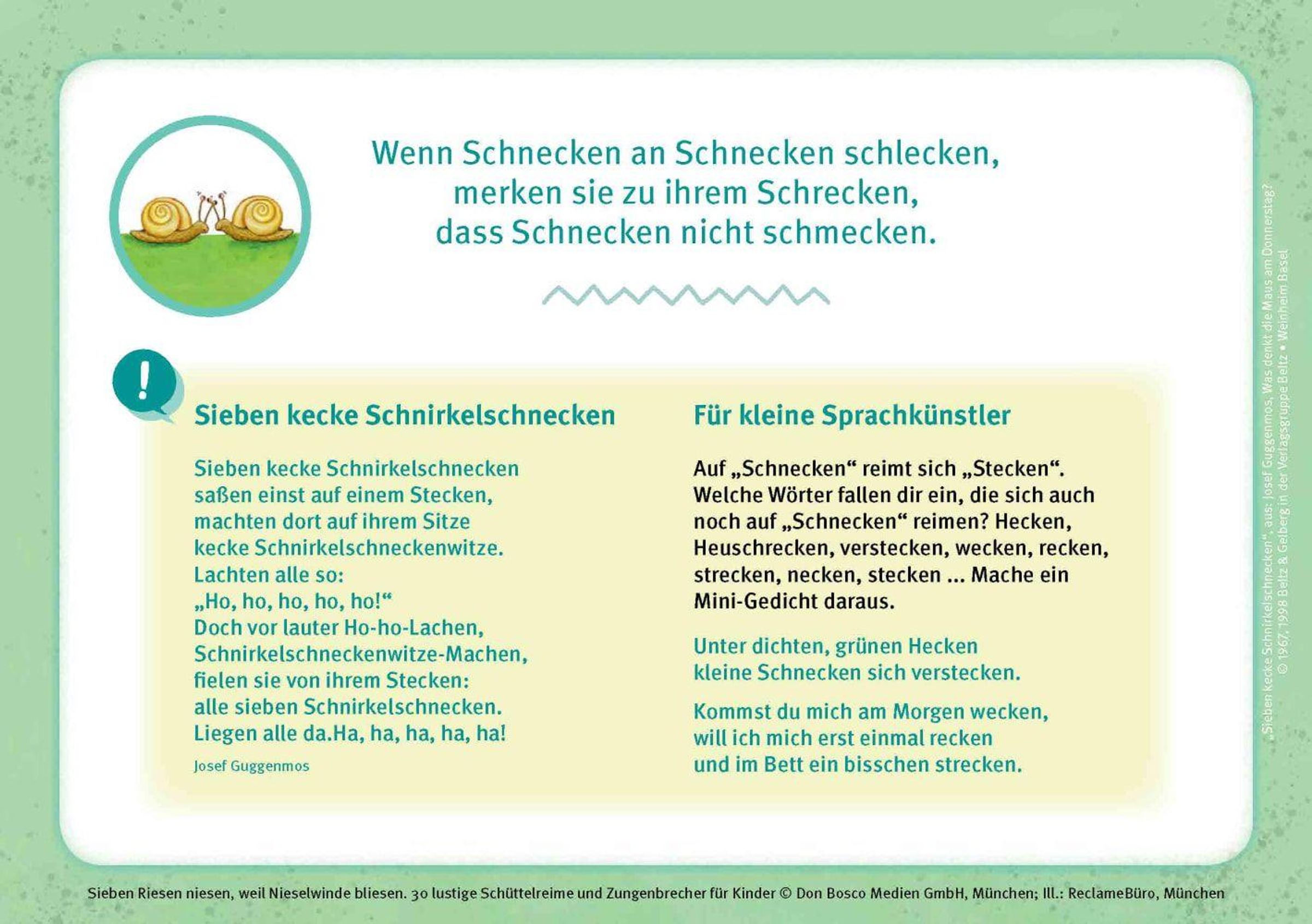 • 30 lustige Schüttelreime und Zungenbrecher für Kinder. Sprachförderung mit Spaß für Kita & Schule. Aussprache & Konzentration trainieren. Bildkarten.