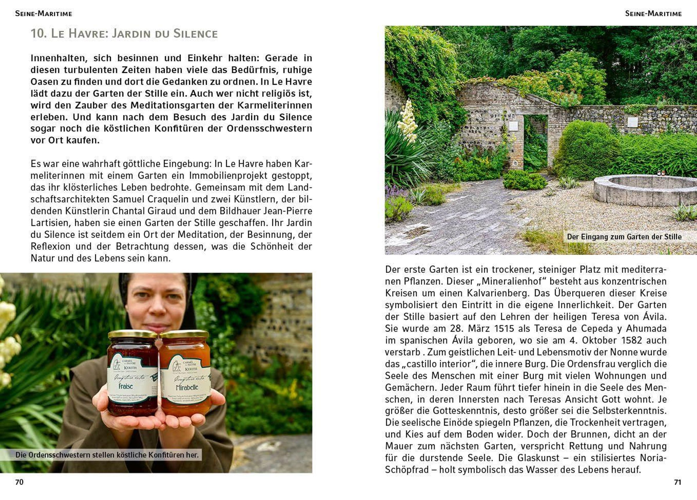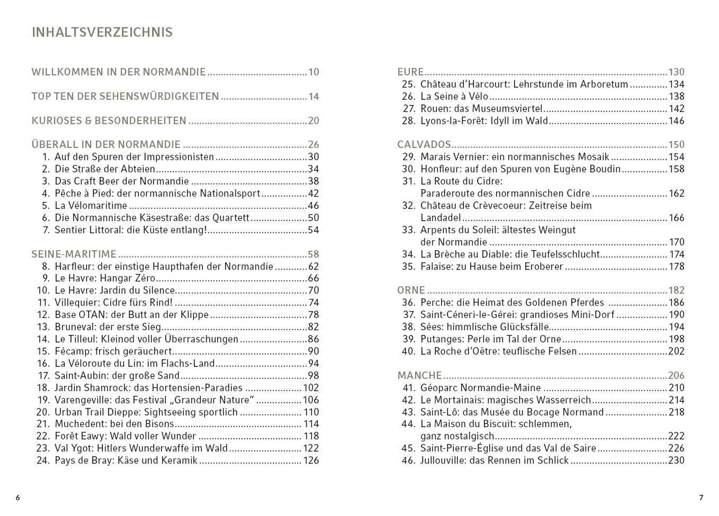 Die Netflix-Serie "Lupin" hat die Normandie zu einem touristischen Hotspot gemacht. Bei den 50 Tipps in diesem Buch treffen Sie garantiert keine Massen, sondern erleben die zahlreichen Facetten einer Normandie, die hinter jeder Biegung neue Erlebnisse und Überraschungen bereithält. Und vor allem eines ist: "insolite", wie die Franzosen sagen - ursprünglich, authentisch und wunderschön. Die Landpartie durch die andere Normandie beginnt im steten Auf und Ab der Vélomaritime, führt zu den Leinenfeldern des Vallée du Dun, zu zottigen Bisons im Hinterland von Dieppe und tief hinein ins Bauernland des Pays de Bray, Heimat des ältesten Käses der Normandie. Im Tal der Seine schmücken Irisblüten auf hellem Reet die Giebel alter "chaumières", und Störche brüten im Marais Vernier. Über die Höhen vom Perche geht es hin zur Normannischen Schweiz mit ihren Schluchten und Bergen, die Gesicht zeigen und die Erdgeschichte offenlegen. Die Landpartie durch die Normandie endet am Couesnon, der schuld daran ist, dass heute der Mont-Saint-Michel zur Normandie gehört, und nicht, wie einst, zur Bretagne. Entdecken Sie 50 Juwelen abseits der Massen in den schönsten Ecken der Normandie. Bienvenue!
