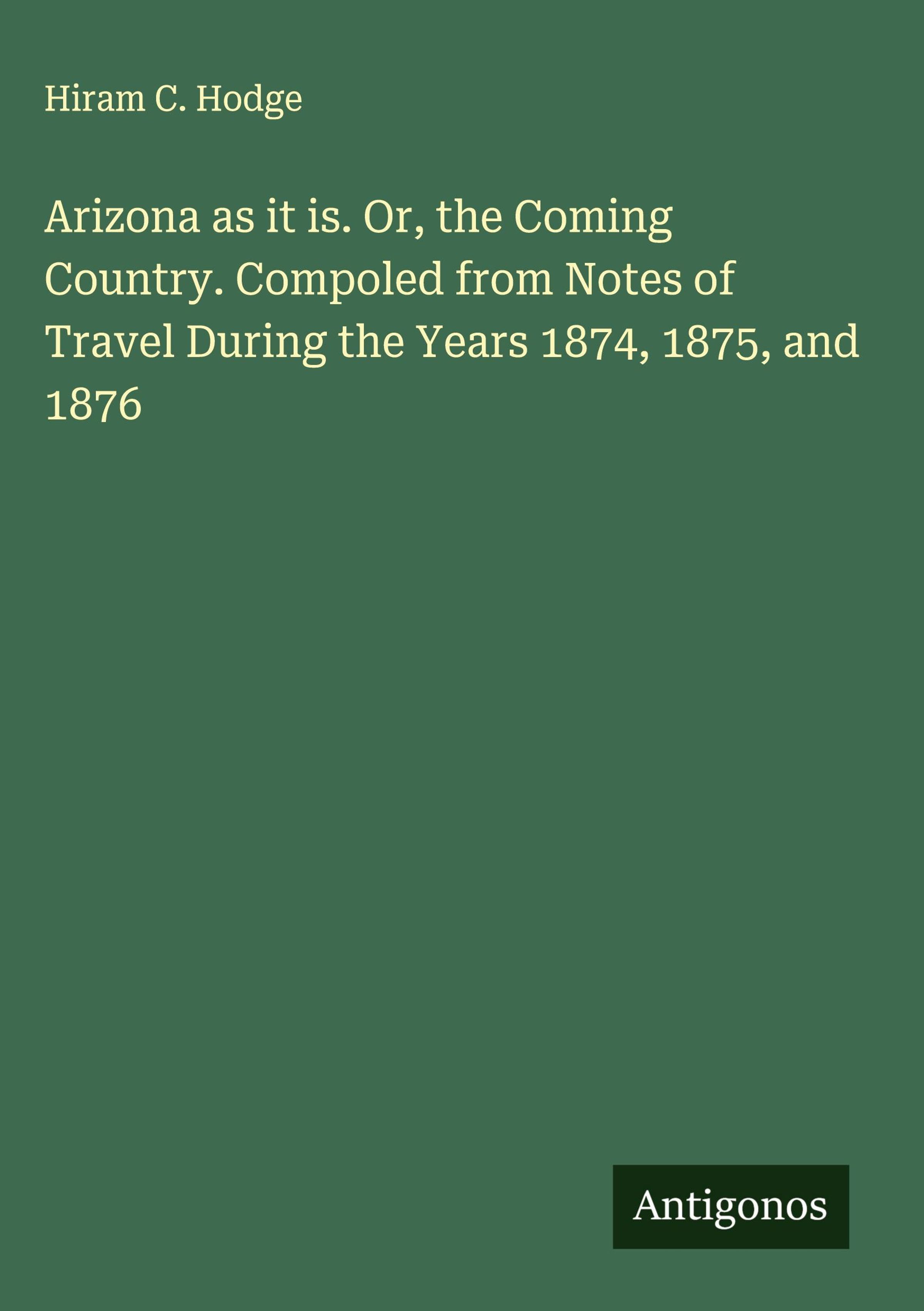 Arizona as it is. Or, the Coming Country. Compoled from Notes of Travel During the Years 1874, 1875, and 1876