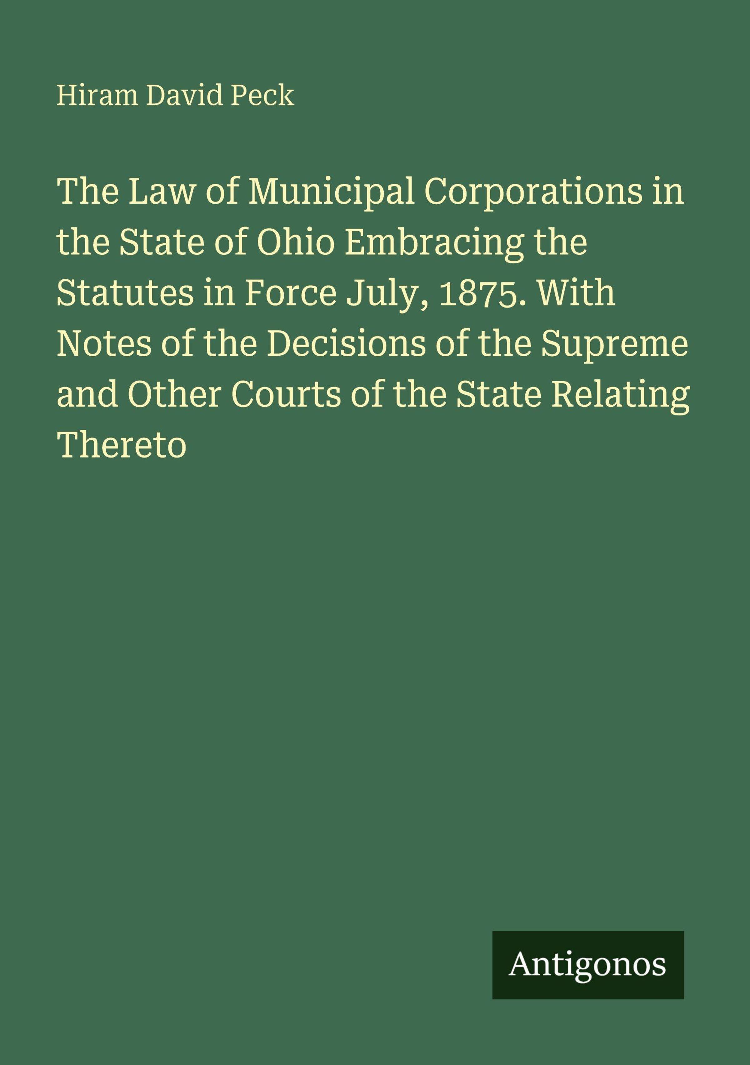The Law of Municipal Corporations in the State of Ohio Embracing the Statutes in Force July, 1875. With Notes of the Decisions of the Supreme and Other Courts of the State Relating Thereto