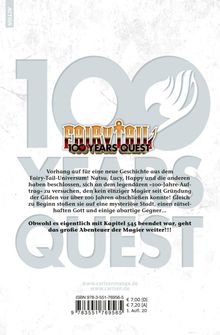 Vorhang auf für eine neue Geschichte aus dem Fairy-Tail-Universum! Natsu, Lucy, Happy und die anderen haben beschlossen, sich an dem legendären >>100-Jahre-Auftrag<< zu versuchen, den kein einziger Magier seit Gründung der Gilden vor über 100 Jahren abschließen konnte! Gleich zu Beginn stoßen sie auf eine mysteriöse Stadt, einen rätselhaften Gott und einige abartige Gegner... Obwohl es eigentlich mit Kapitel 545 beendet war, geht das große Abenteuer der Magier weiter!!!