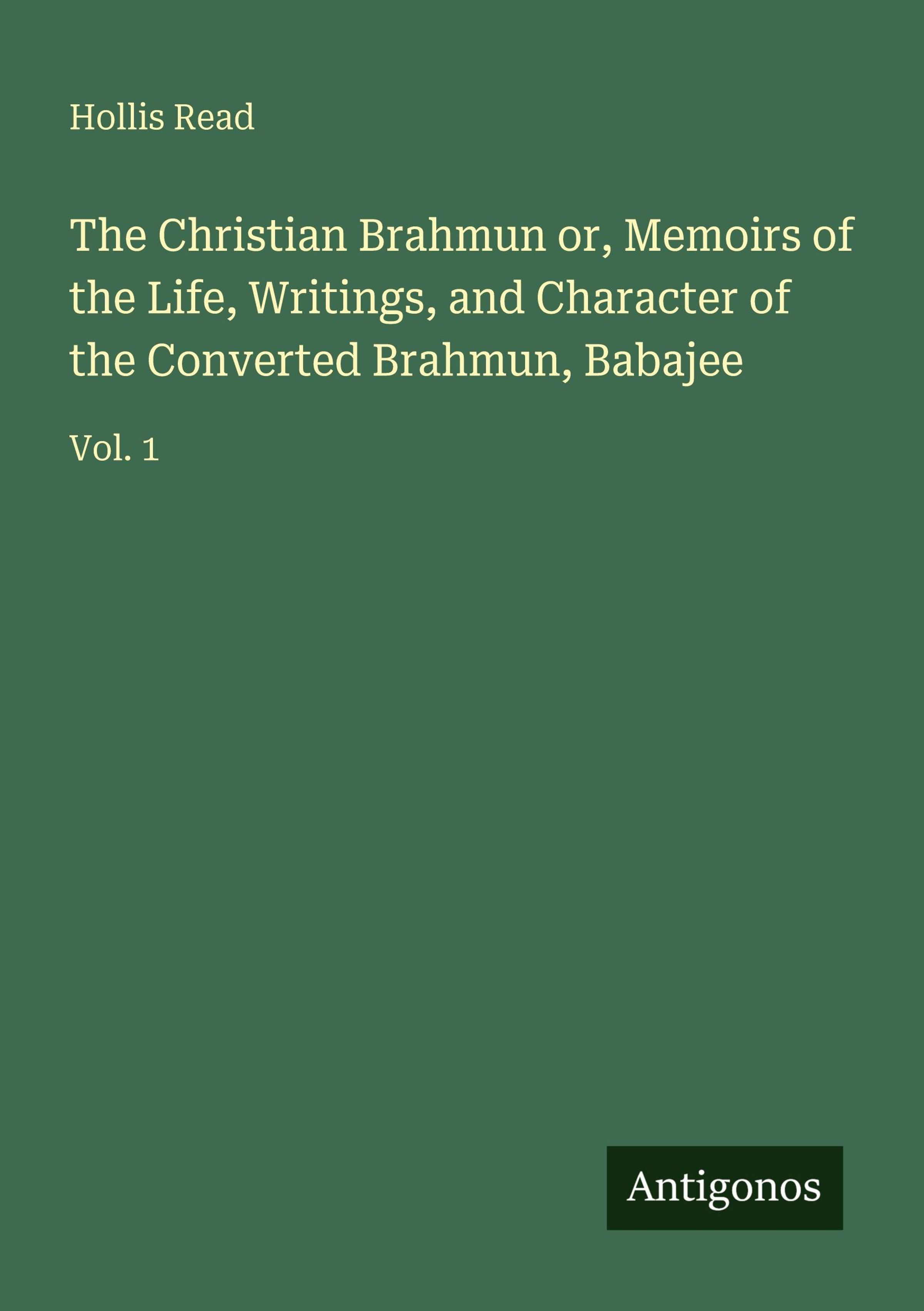 The Christian Brahmun or, Memoirs of the Life, Writings, and Character of the Converted Brahmun, Babajee