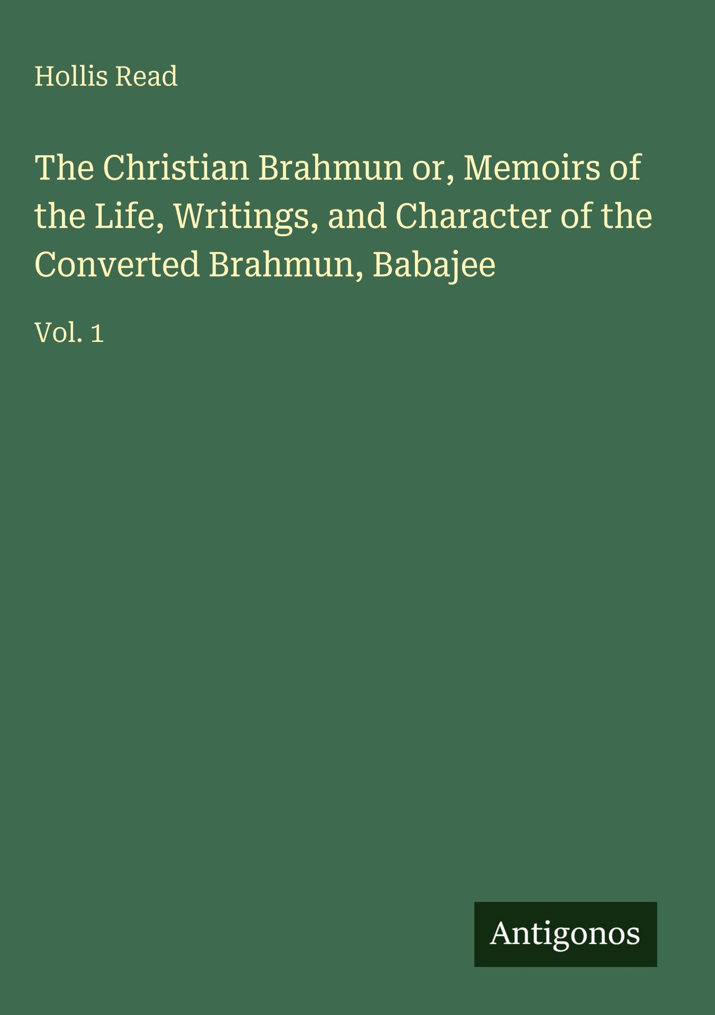 The Christian Brahmun or, Memoirs of the Life, Writings, and Character of the Converted Brahmun, Babajee