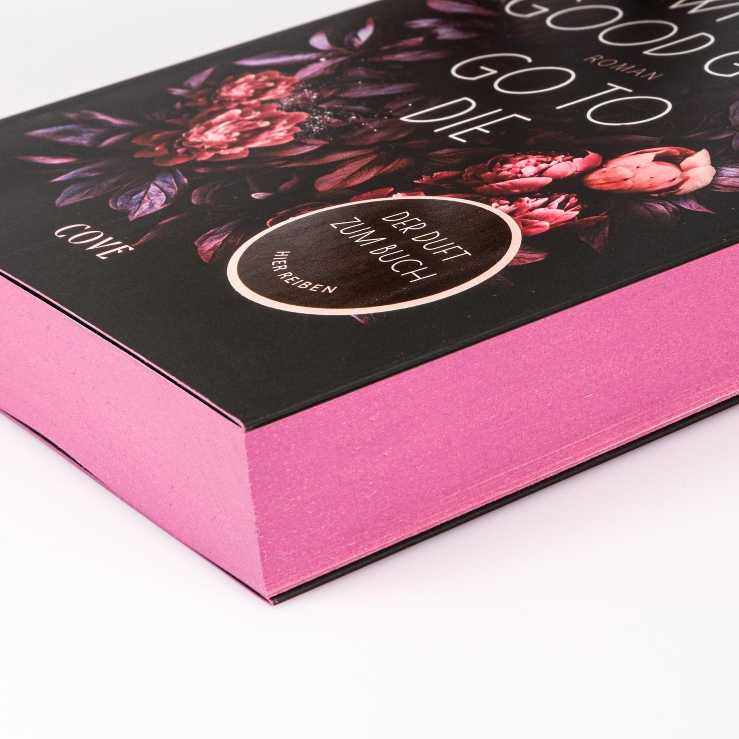 Veredelte Klappenbroschur mit farbigem Buchschnitt und ablösbarem Duftsticker auf dem Cover - nur solange der Vorrat reicht!