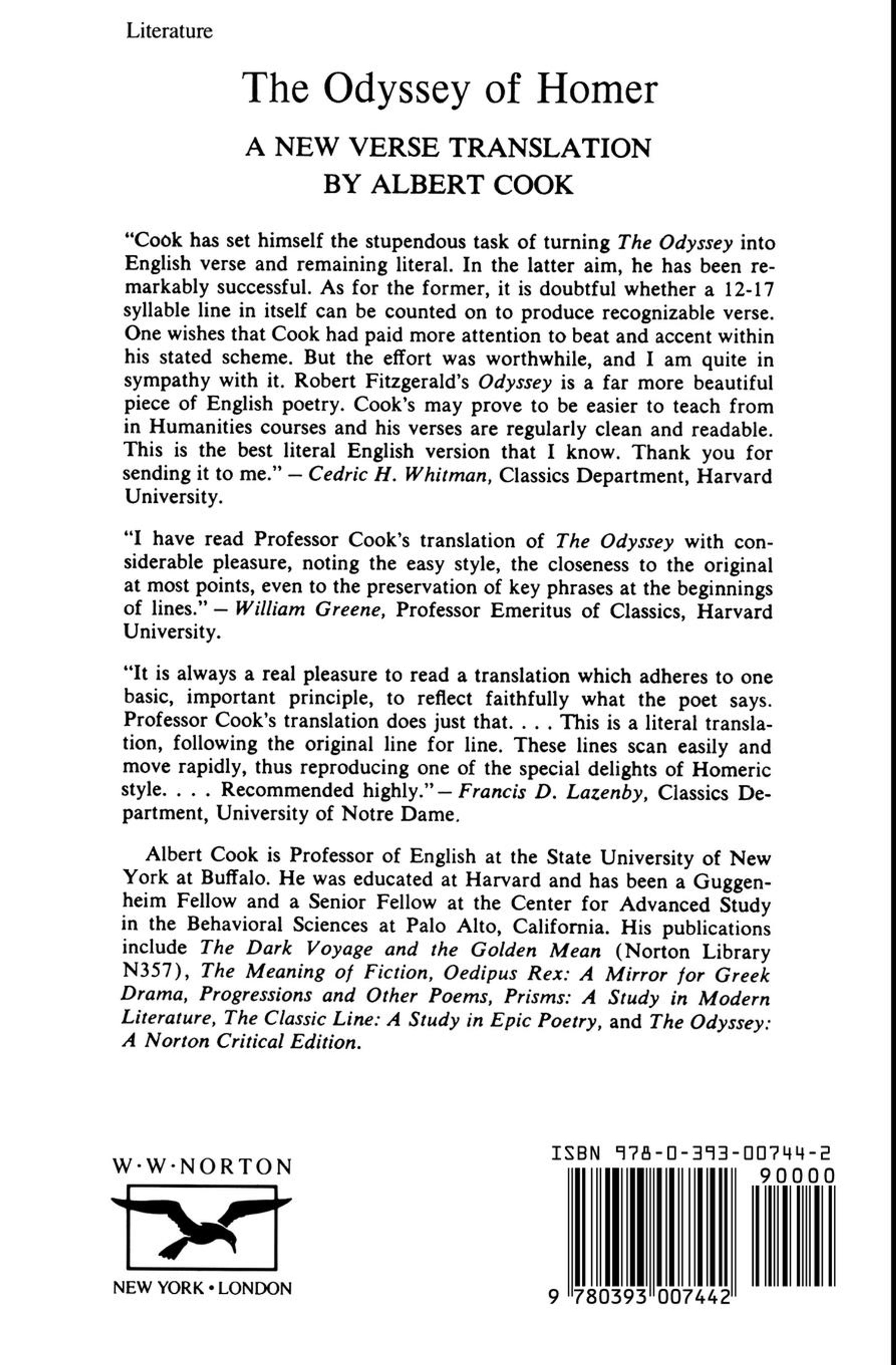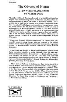 "It is always a real pleasure to read a translation which adheres to one basic, important principle, to reflect faithfully what the poet says. Professor Cook's translation does just that.... This is a literal translation, following the original line for line. These lines scan easily and move rapidly, thus reproducing one of the special delights of Homeric style.... Recommended highly." -Francis D. Lazenby, Classics Department, University of Notre Dame