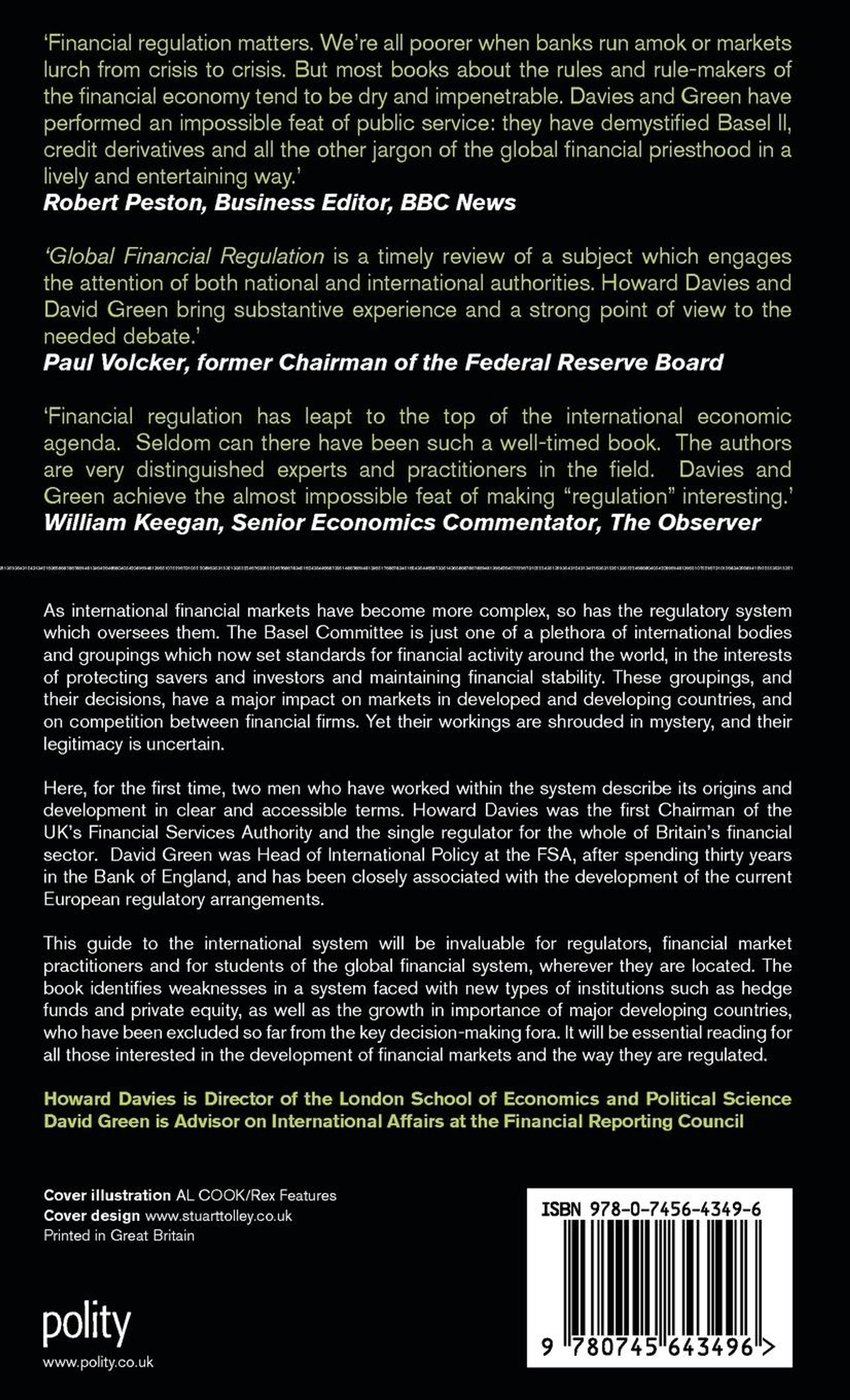 Here, for the first time, two men who have worked within the system describe its origins and development in clear and accessible terms. Howard Davies was the first Chairman of the UK's Financial Services Authority, the single regulator for the whole of Britain's financial sector. David Green was Head of International Policy at the FSA, after spending thirty years in the Bank of England, and has been closely associated with the development of the current European regulatory arrangements.