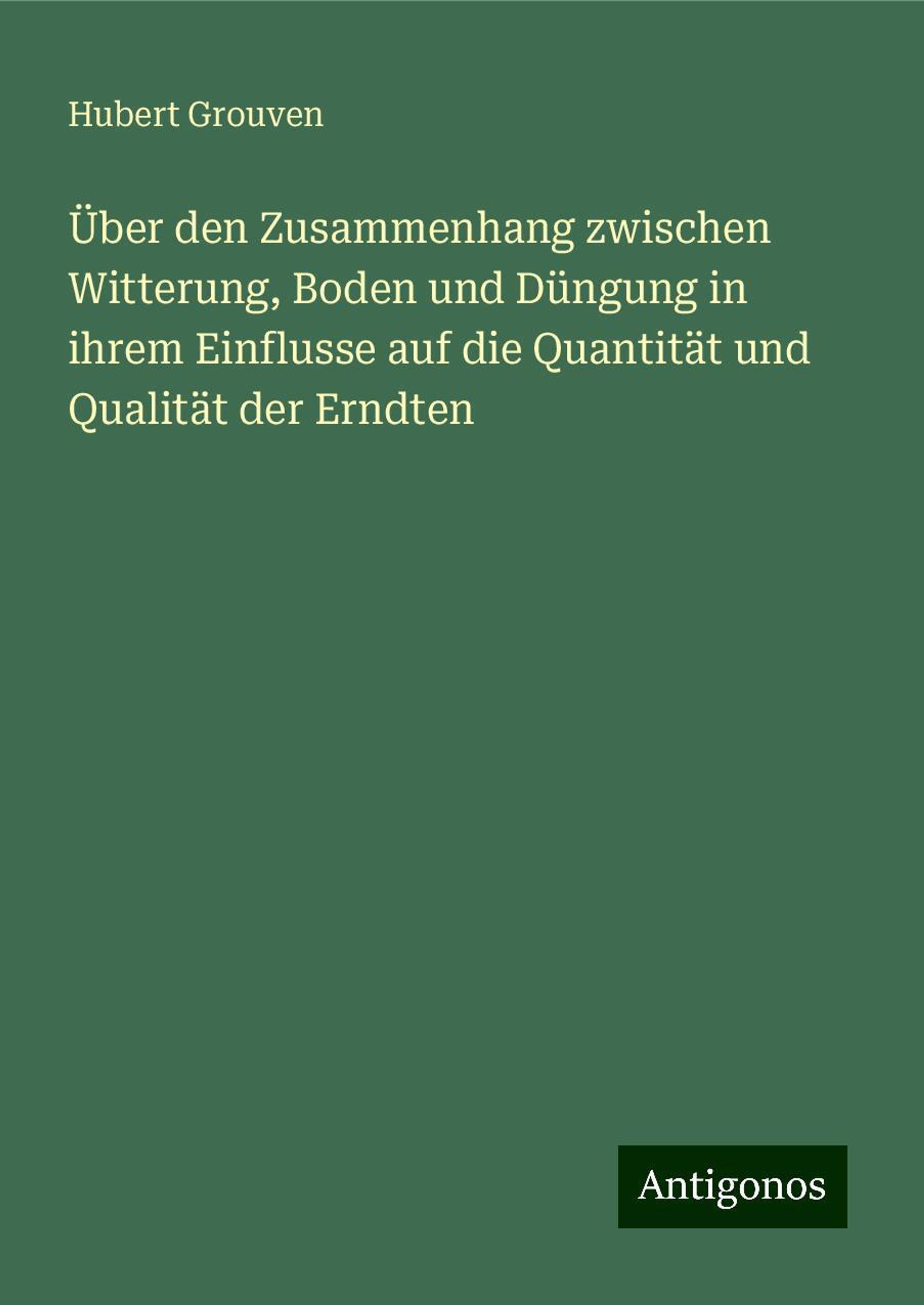 Hubert Grouven: Grouven, H: Über den Zusammenhang zwischen Witterung, Boden, Fester Einband