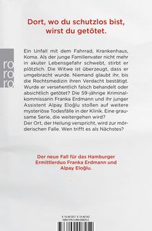 Ein Unfall mit dem Fahrrad, Krankenhaus, Koma. Als der junge Familienvater nicht mehr in akuter Lebensgefahr schwebt, stirbt er plötzlich. Die Witwe ist überzeugt, dass er umgebracht wurde. Niemand glaubt ihr, bis die Rechtsmedizin ihren Verdacht bestätigt. Wurde er versehentlich falsch behandelt oder absichtlich getötet? Die 59-jährige Kriminalkommissarin Franka Erdmann und ihr junger Assistent Alpay Eloglu stoßen auf weitere mysteriöse Todesfälle in der Klinik. Eine grausame Serie, die weitergehen wird? Der Ort, der Heilung verspricht, wird zur mörderischen Falle. Wen trifft es als Nächstes?