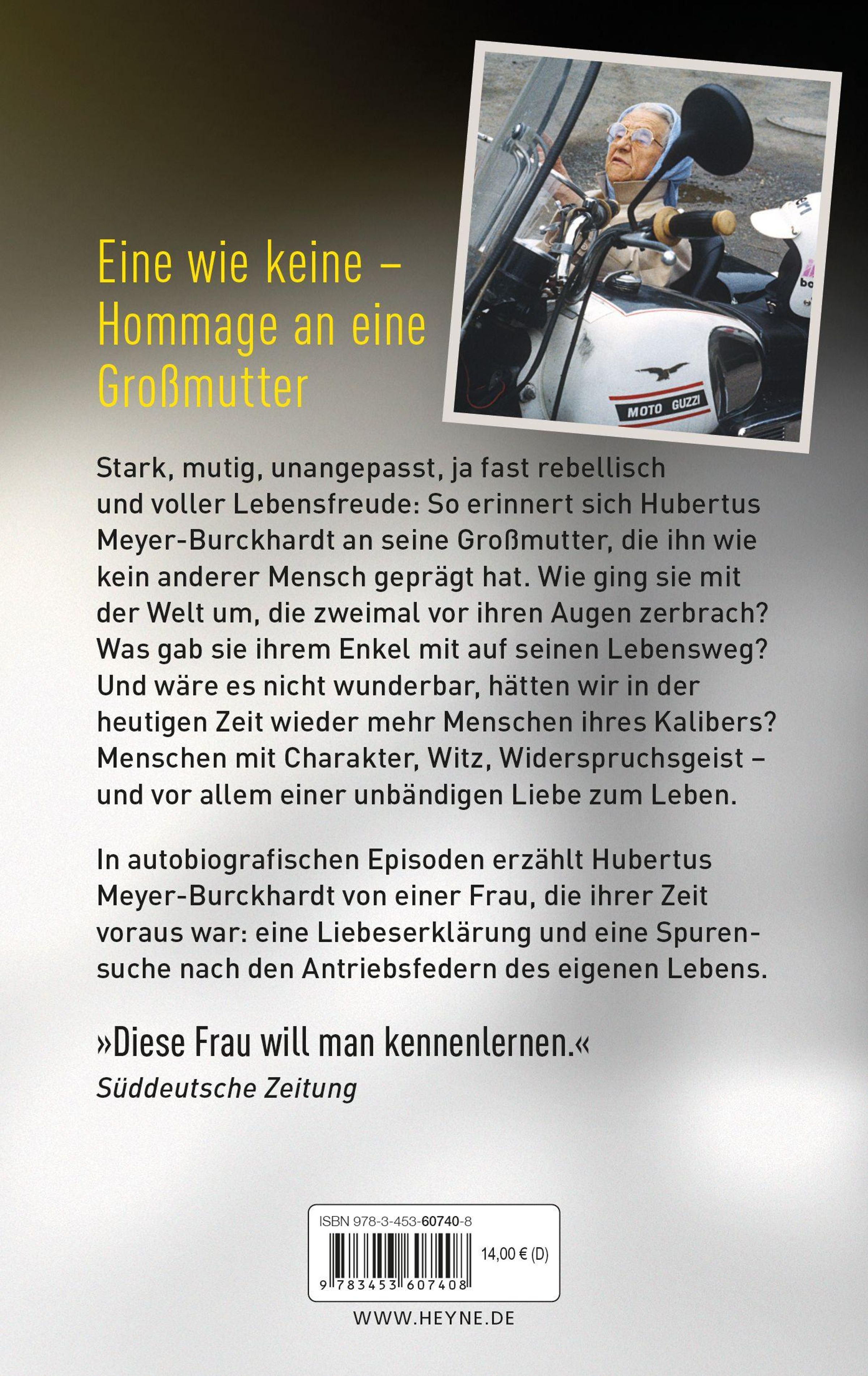 Stark, mutig, unangepasst, ja fast rebellisch und voller Lebensfreude: So erinnert sich Hubertus Meyer-Burkhardt - TV-Produzent, Bestsellerautor und Gastgeber der NDR-Talkshow - an seine geliebte Großmutter, die ihn wie kein anderer Mensch geprägt hat. Wie ging sie mit der Welt um, die zweimal vor ihren Augen zerbrach? Was gab sie ihrem Enkel mit auf seinen Lebensweg? Und wäre es nicht wunderbar, hätten wir in der heutigen Zeit wieder mehr Menschen ihres Kalibers? Menschen mit Charakter, Witz, Widerspruchsgeist - und vor allem einer unbändigen Liebe zum Leben.