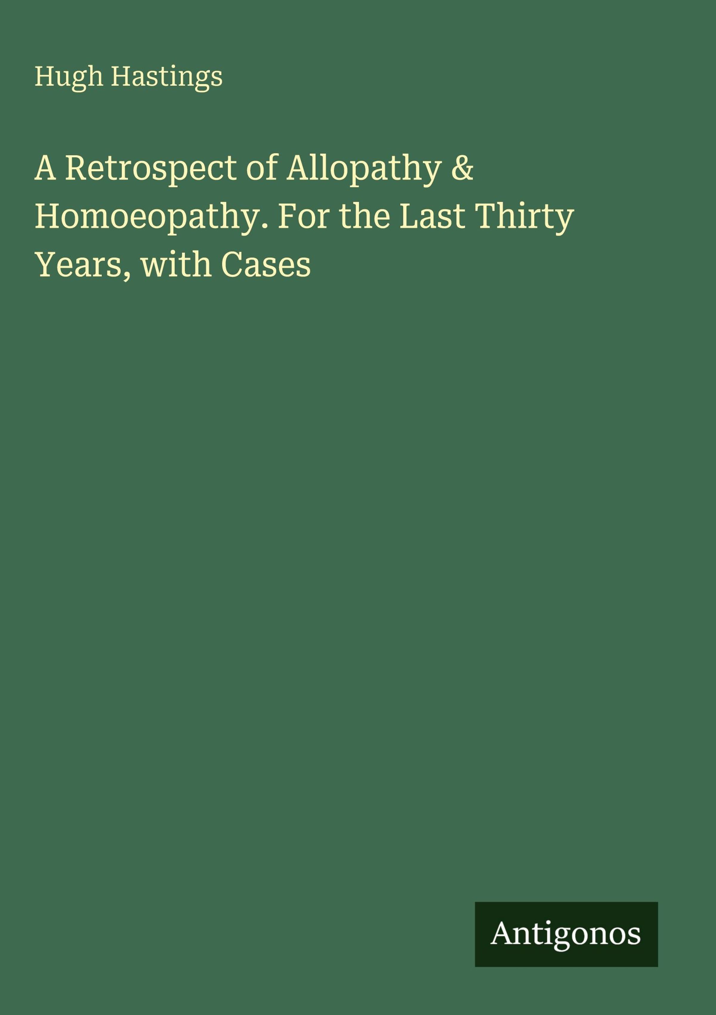 Hugh Hastings: A Retrospect of Allopathy & Homoeopathy. For the Last Thirty Years, with Cases, Gebunden