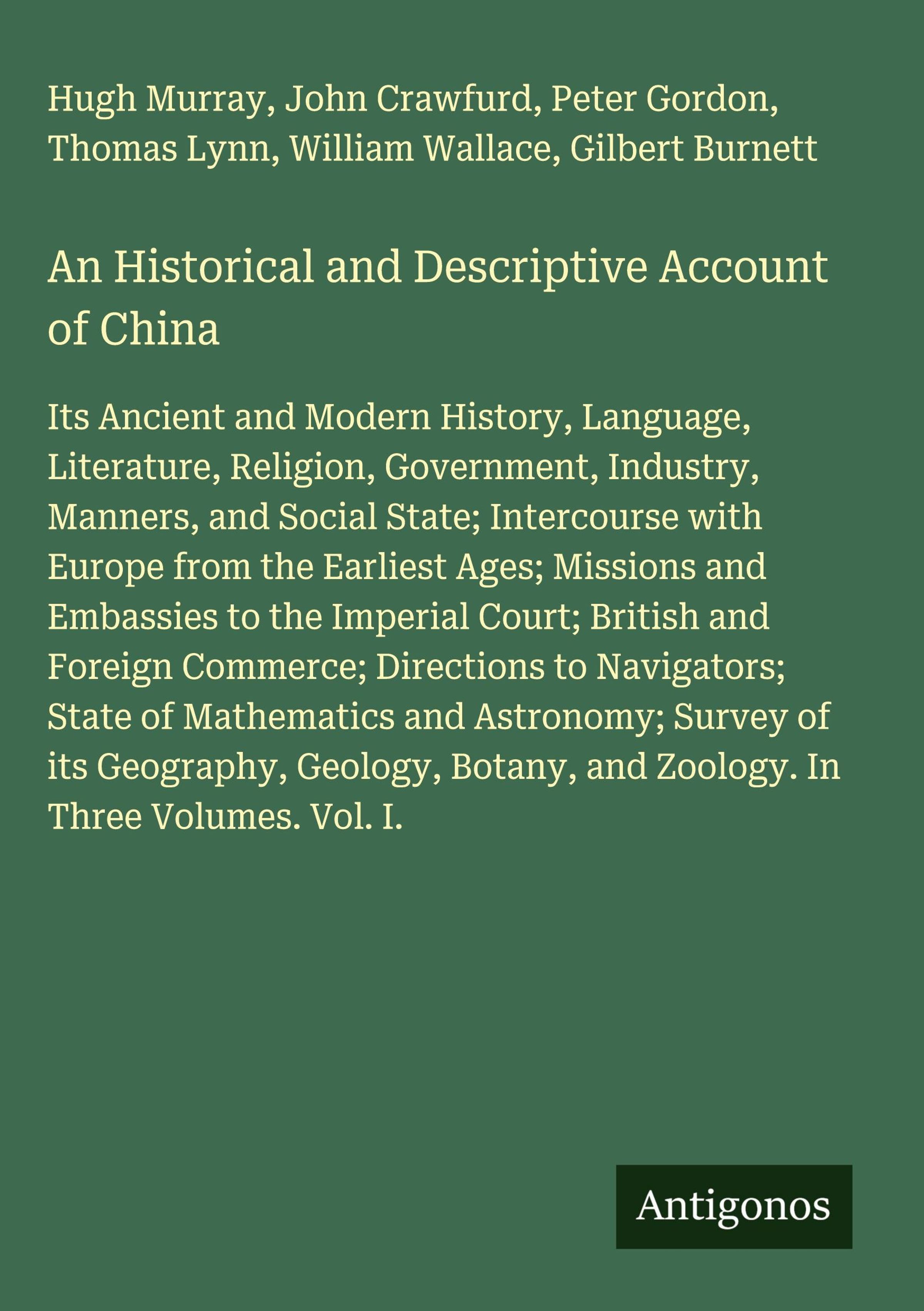 • Its Ancient and Modern History, Language, Literature, Religion, Government, Industry, Manners, and Social State; Intercourse with Europe from the Earliest Ages; Missions and Embassies to the Imperial Court; British and Foreign Commerce; Directions to Navigators; State of Mathematics and Astronomy; Survey of its Geography, Geology, Botany, and Zoology. In Three Volumes. Vol. I.