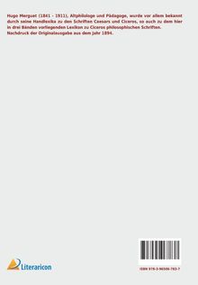 Hugo Merguet (1841 - 1911), Altphilologe und Pädagoge, wurde vor allem bekannt durch seine Handlexika zu den Schriften Caesars und Ciceros, so auch zu dem hier in drei Bänden vorliegenden Lexikon zu Ciceros philosophischen Schriften. Nachdruck der Originalausgabe aus dem Jahr 1894.