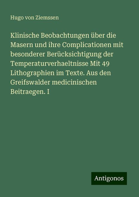 Ziemssen, H: Klinische Beobachtungen über die Masern und ihr