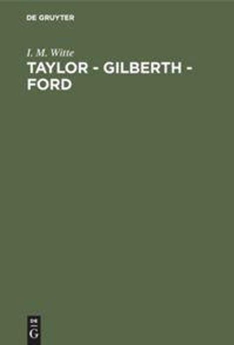 I. M. Witte: Taylor - Gilberth - Ford, Buch, Buch
