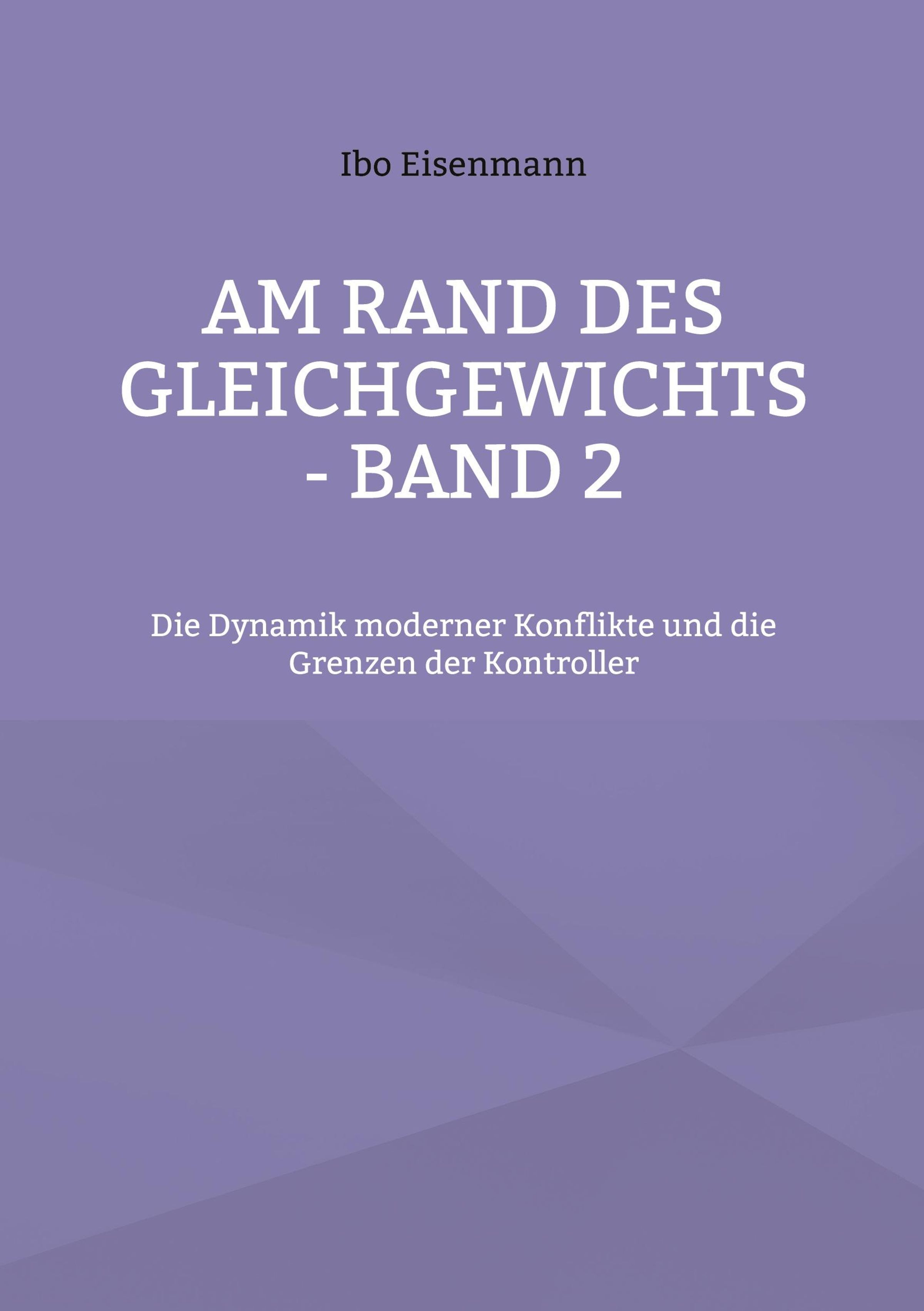 "AM RAND DES GLEICHGEWICHTS - BAND 2" in weißer Schrift auf lila Hintergrund, oben steht "Ibo Eisenmann". Geometrisches Muster., Buch
