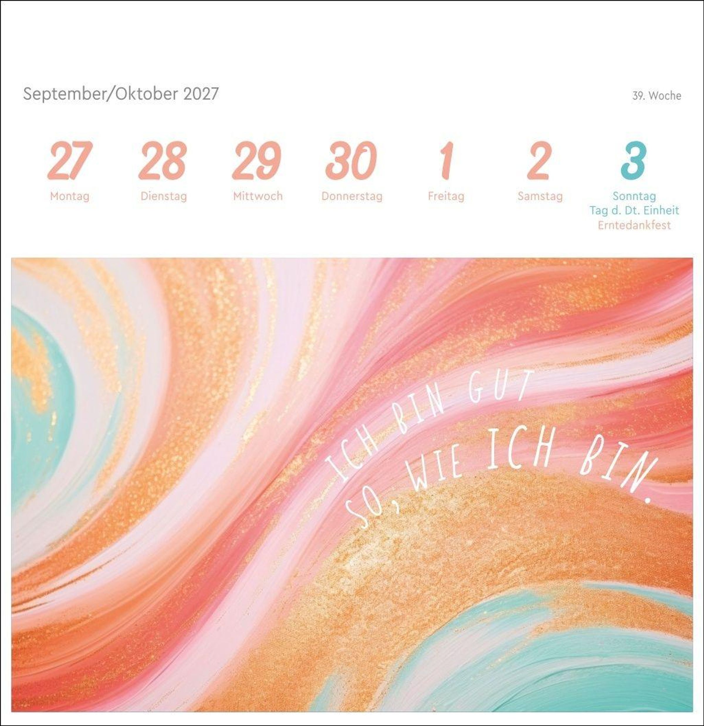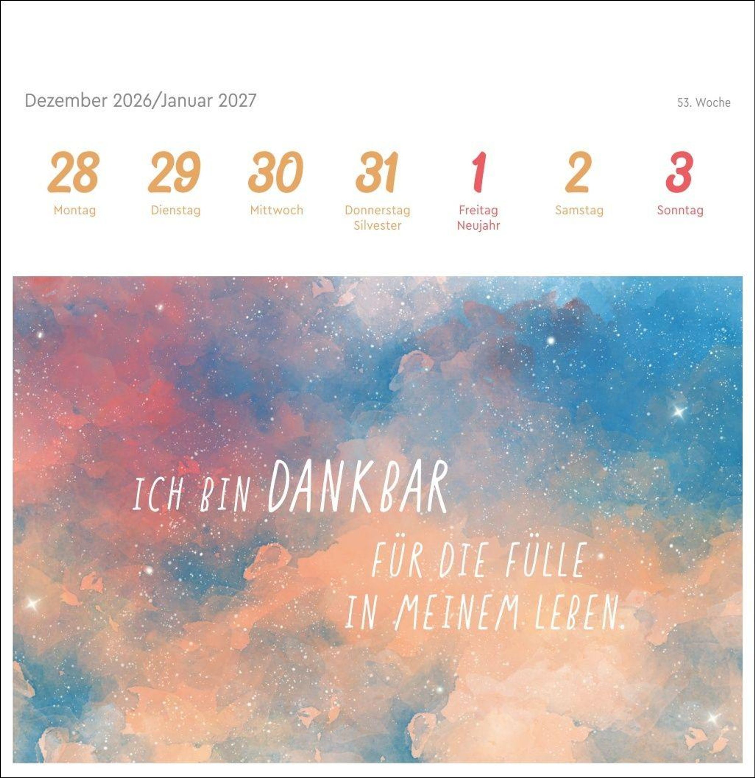 - Wochenkalender im Format 16,5 x 17,7 cm für spirituelle Gelassenheit