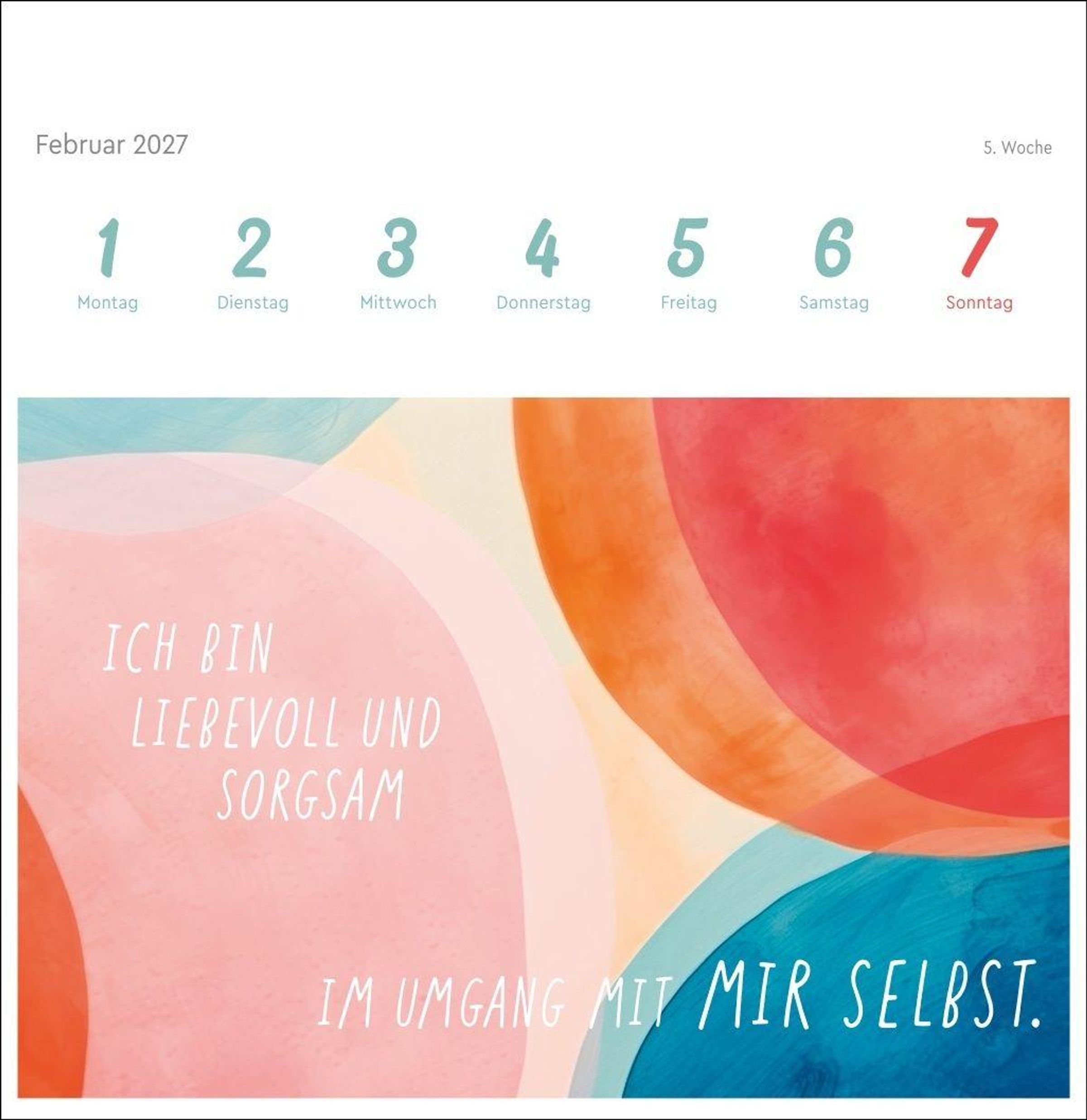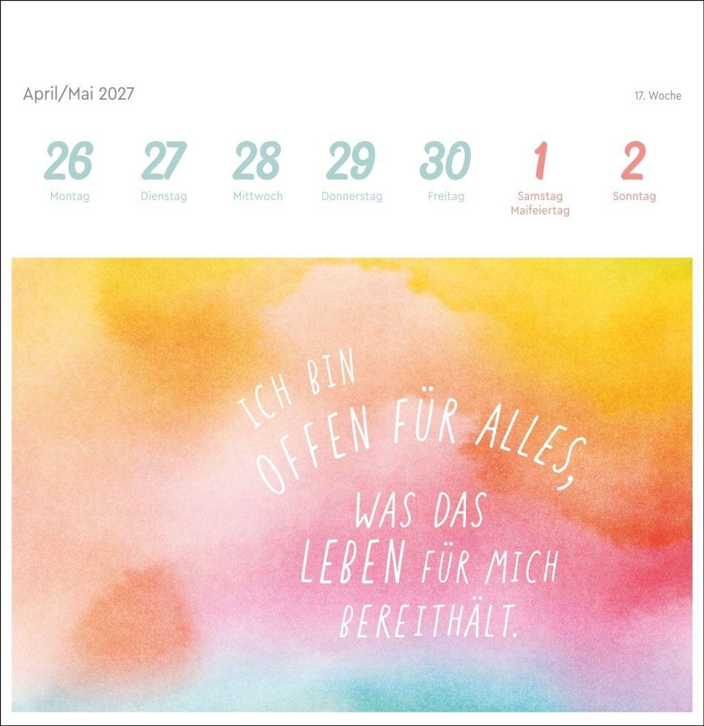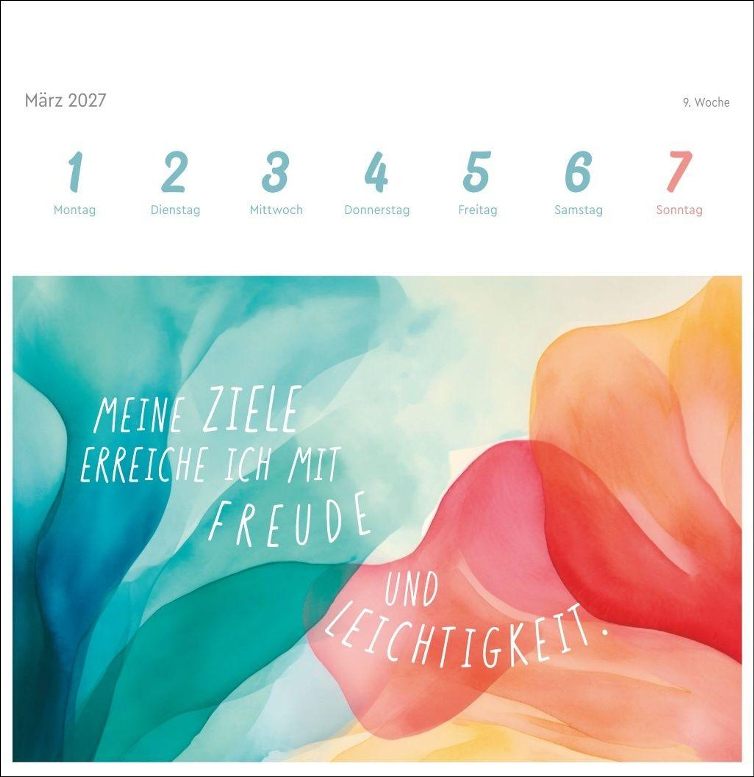 Farbenfrohe Gestaltung und die stärkende Macht positiver Gedanken machen diesen Kalender im Postkartenformat zum absoluten Hingucker auf dem Schreibtisch