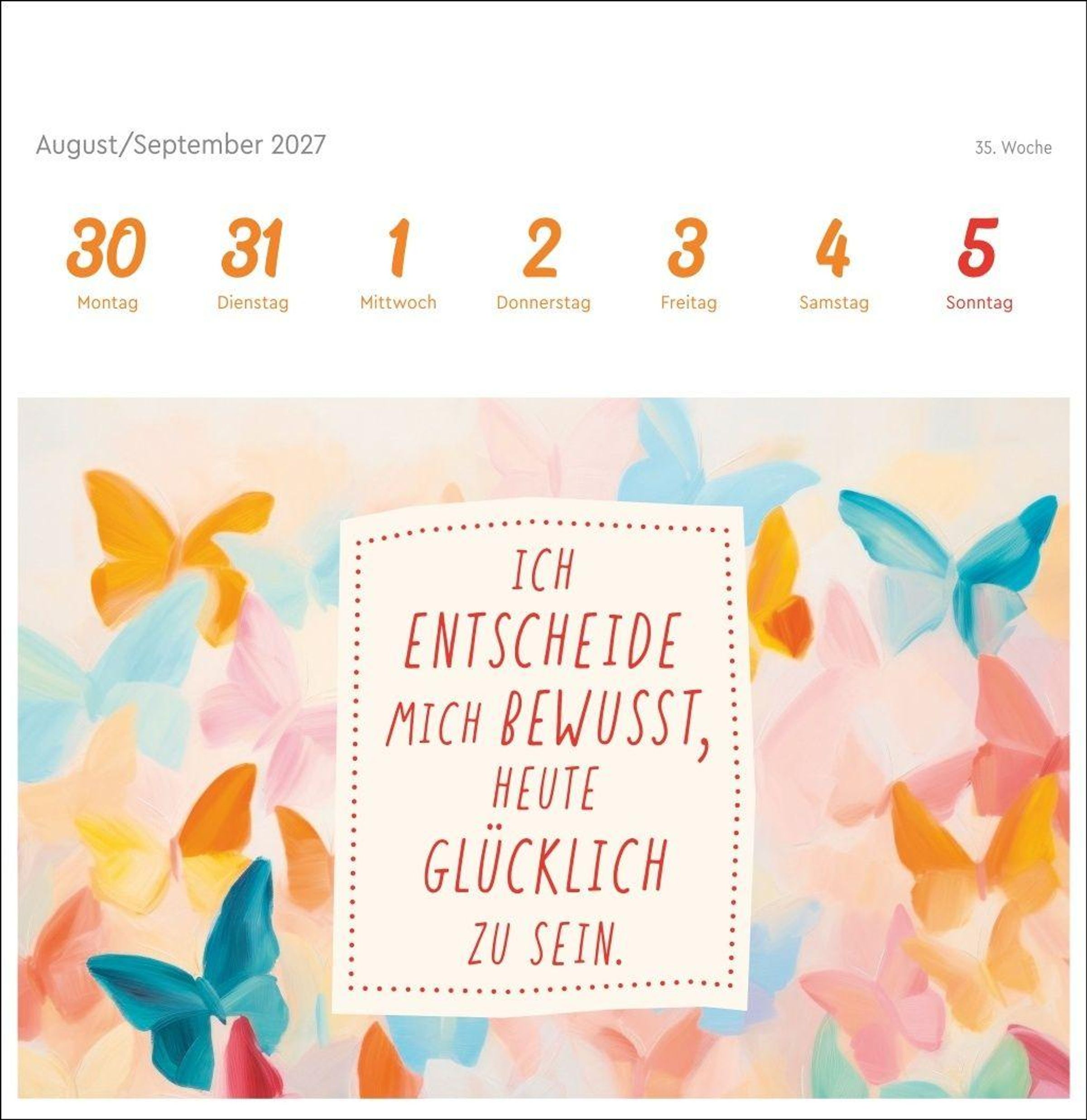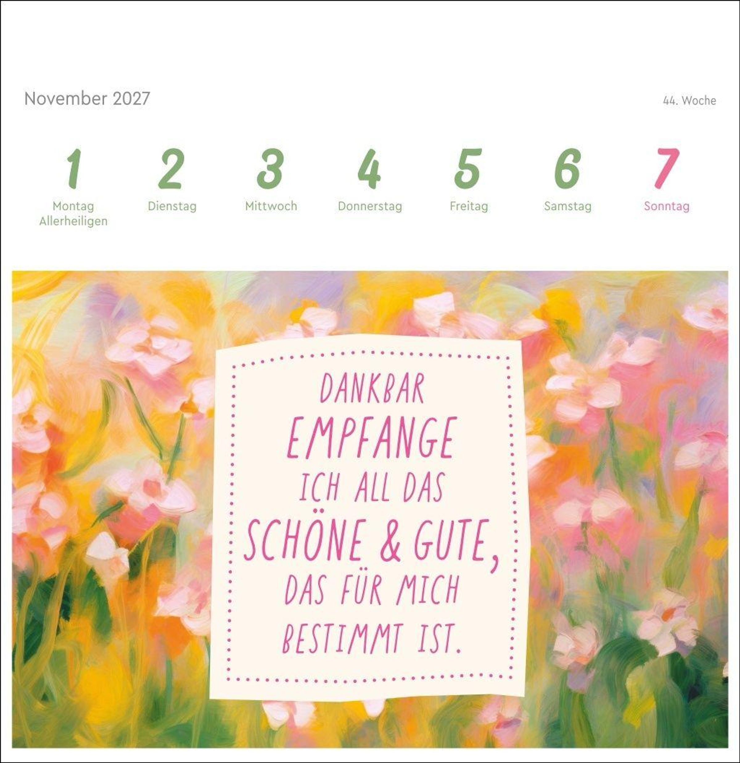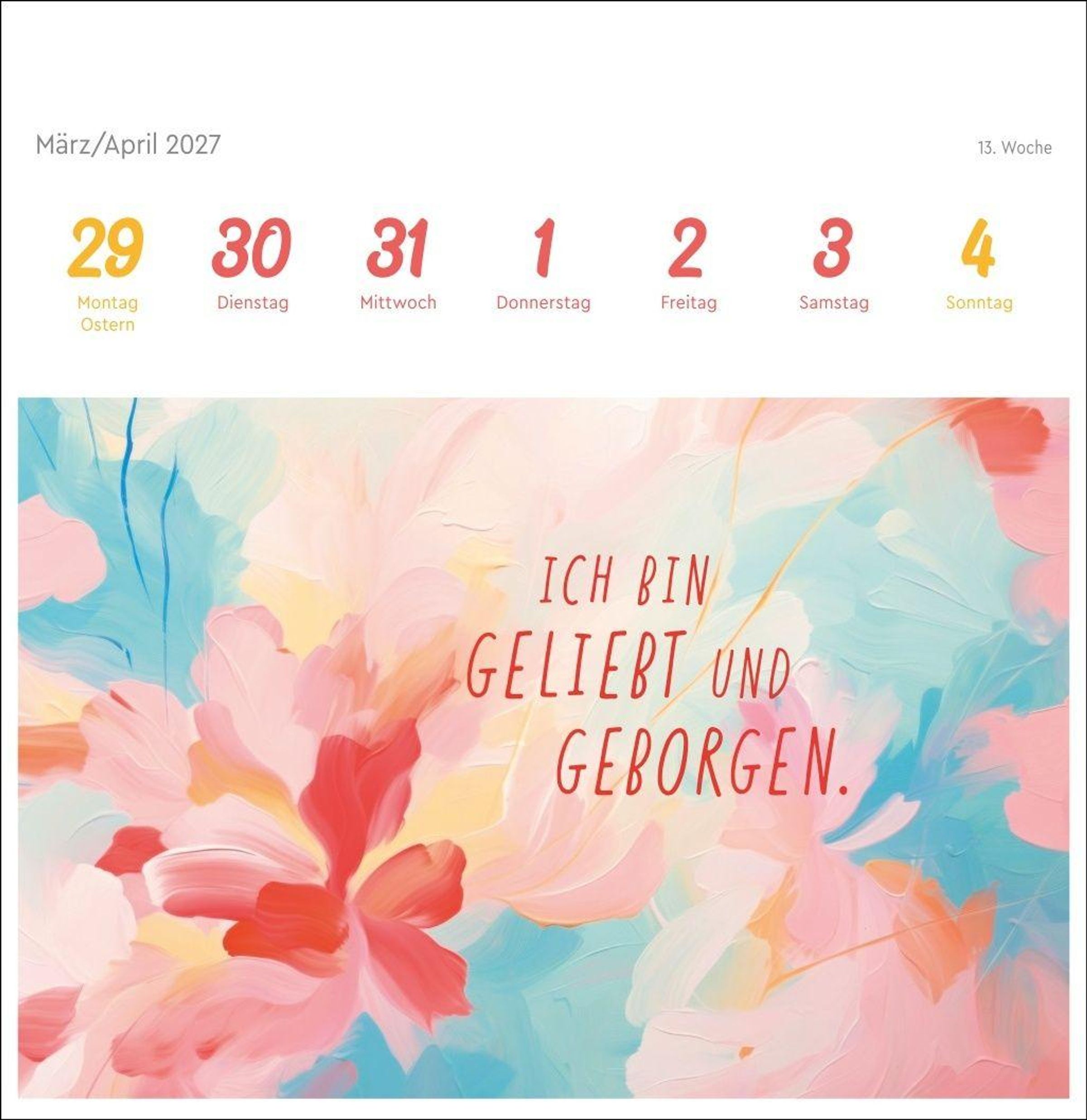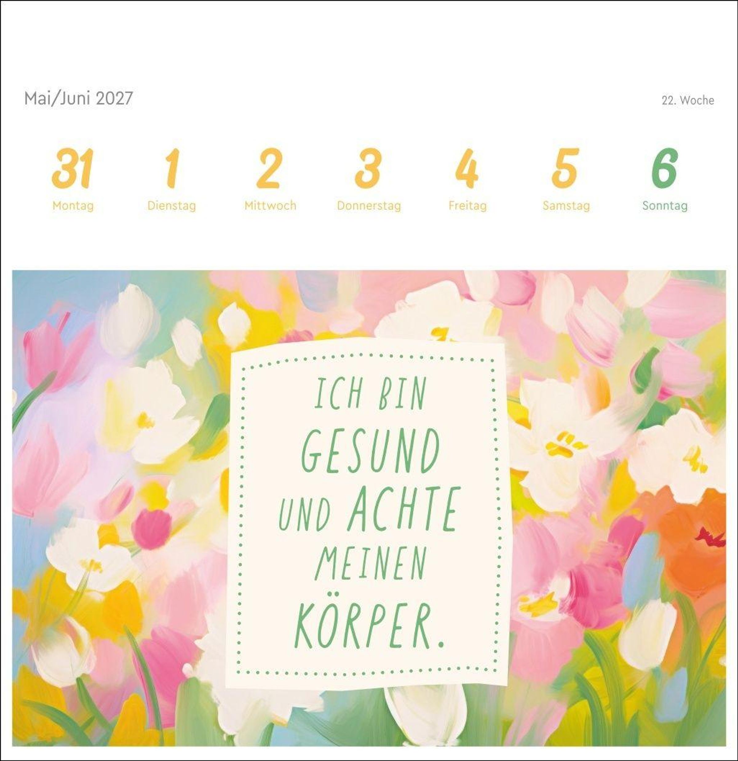 Farbenfrohe Gestaltung und die stärkende Macht positiver Gedanken machen diesen Kalender im Postkartenformat zum absoluten Hingucker auf dem Schreibtisch