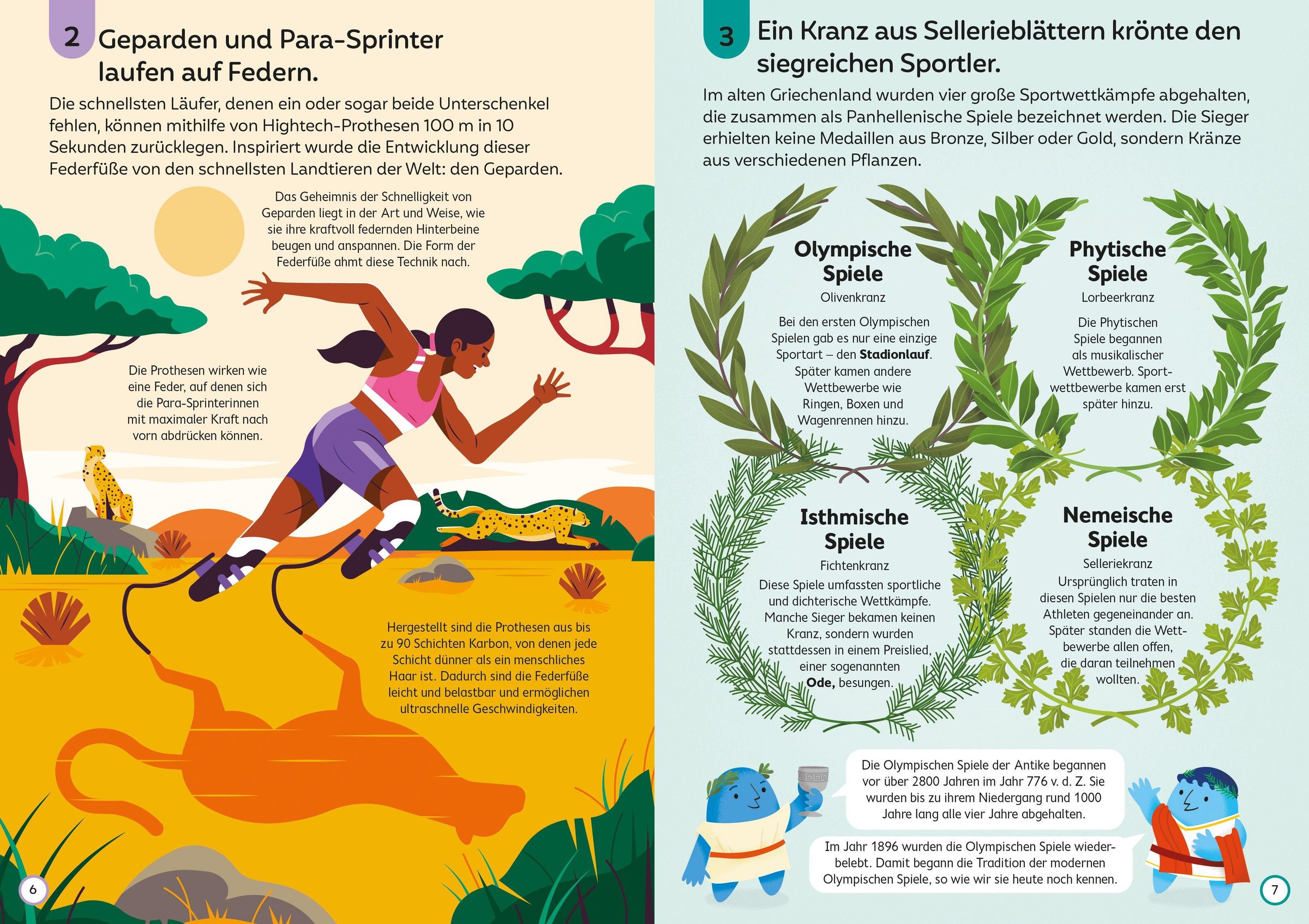 Wie hält man als Torhüter einen Elfmeter? Was hat ein finnischer Designer-Pool mit Skateboarden zu tun? Wann wurde der Stabhochsprung erfunden? Und wie ging es beim Ballsport der Maya zu? Erfahre 100 wissenswerte, spannende und kuriose Fakten rund um das Thema Sport. Auf jeder Seite wird ein neues Thema altersgerecht erklärt und anschaulich illustriert. Mit Stichwortverzeichnis.