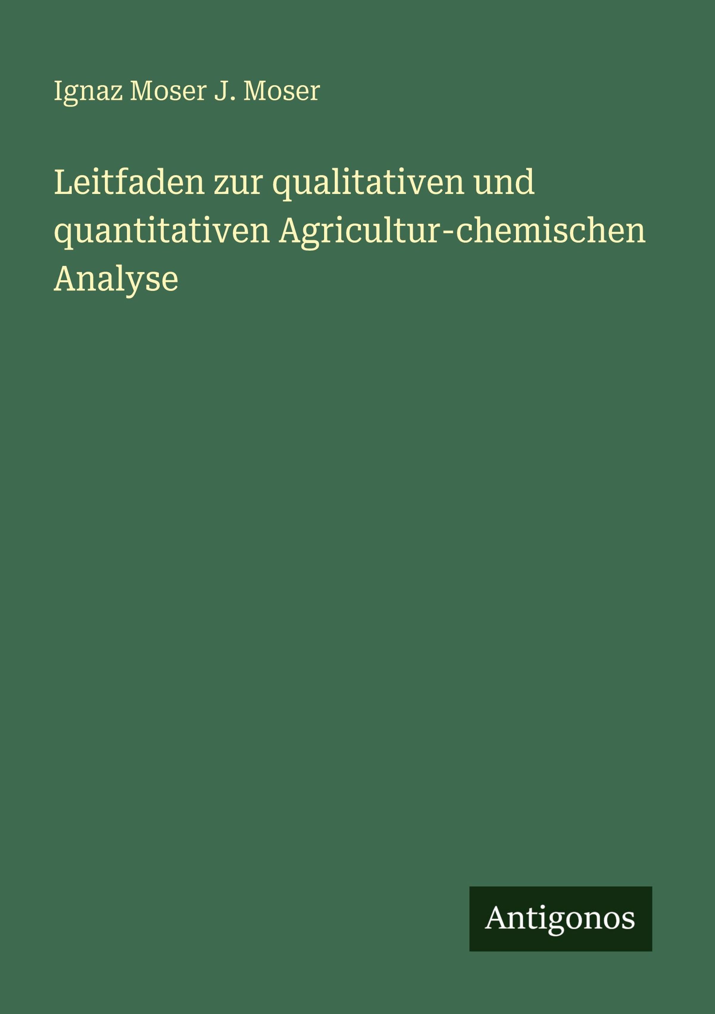 Ignaz Moser J. Moser: Leitfaden zur qualitativen und quantitativen Agricultur-chemischen Analyse, Kartoniert / Broschiert