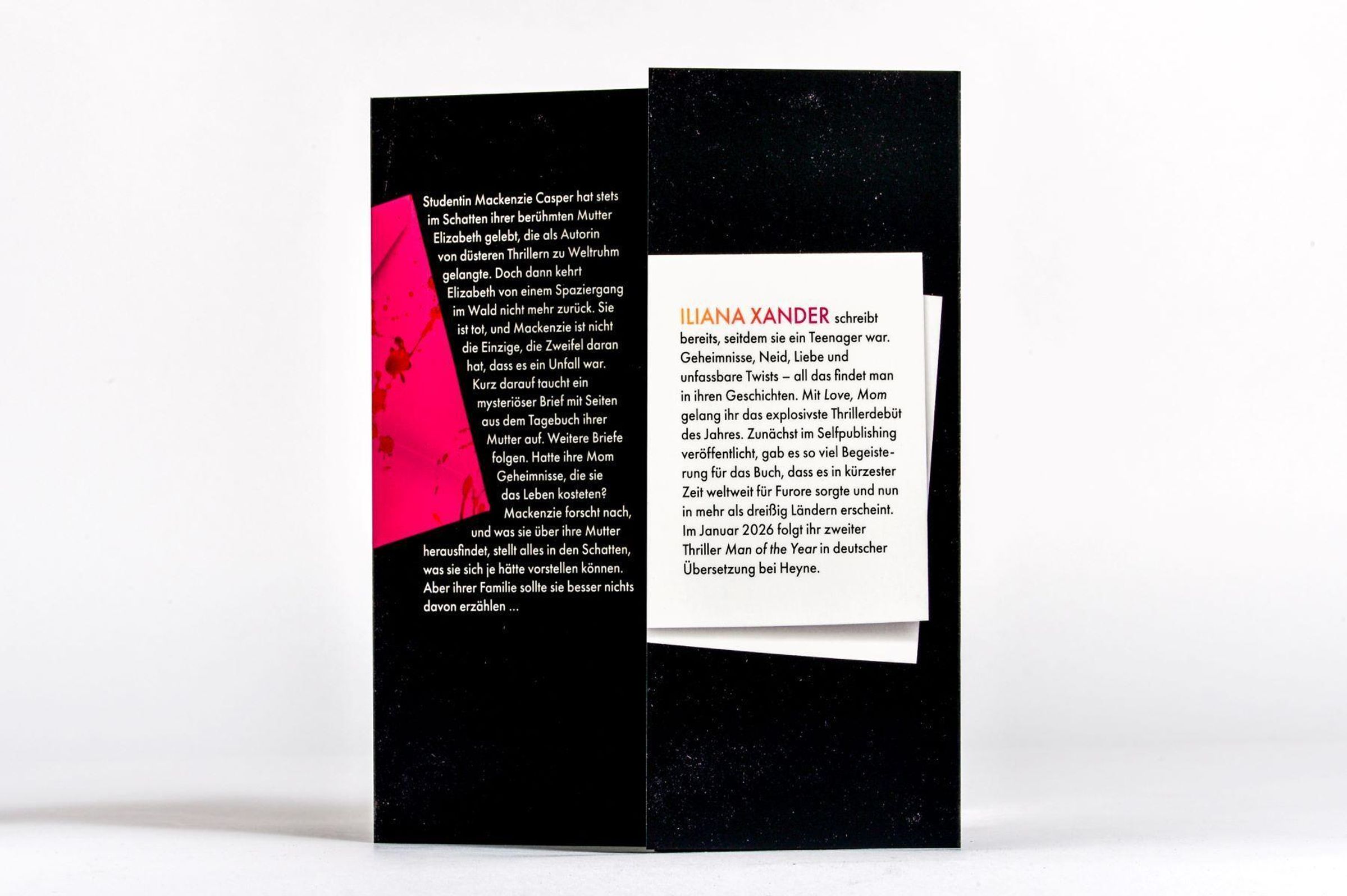 Studentin Mackenzie Casper hat stets im Schatten ihrer berühmten Mutter Elizabeth gelebt, einer der bekanntesten Thriller-Autorinnen der Welt. Doch jetzt ist Elizabeth tot. Mackenzie ist nicht die Einzige die Zweifel daran hat, dass es ein tragischer Unfall war. Auf der Trauerfeier erhält sie einen mysteriösen Brief mit Seiten aus dem Tagebuch ihrer Mutter. Weitere Briefe folgen. Hatte ihre Mom Geheimnisse, die sie das Leben kosteten? Um das herauszufinden, muss Mackenzie selbst Nachforschungen anstellen. Dabei darf sie niemandem trauen. Vor allem nicht ihrer Familie.