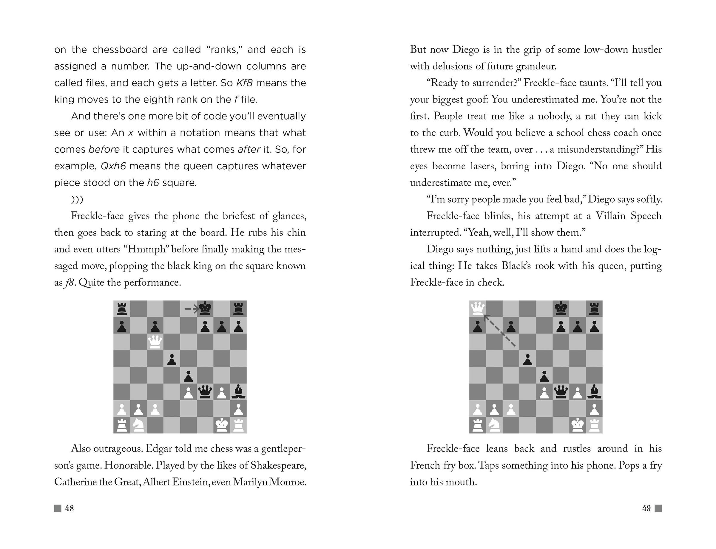 In the process, diagrams of chess moves will inspire chess players at all levels, but readers don't have to know chess to be uplifted by this story how humans (and stray cats) find their people and a love of the game.