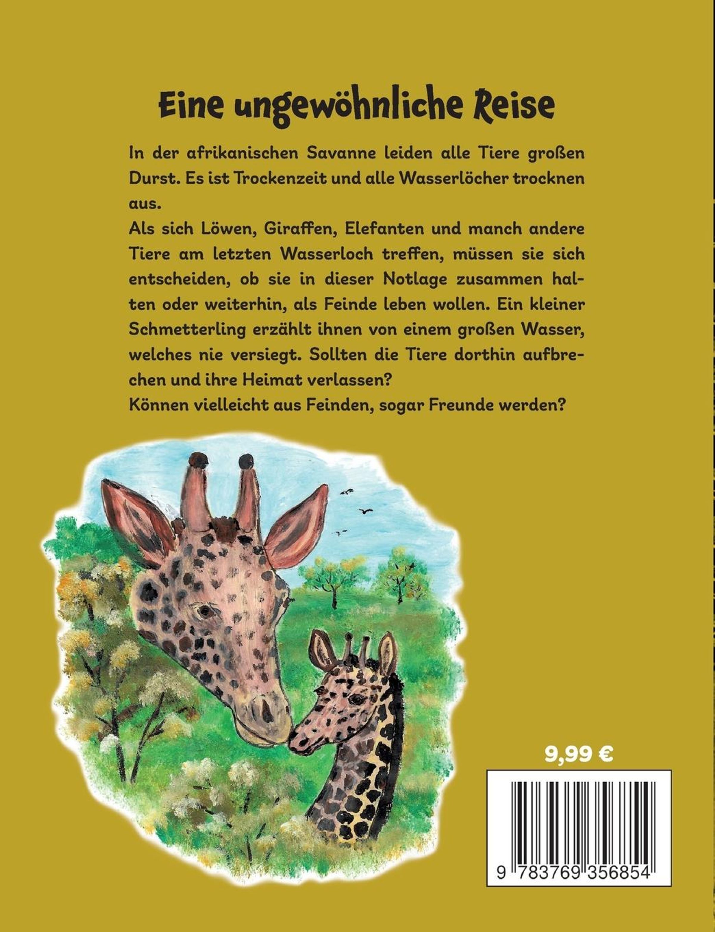 Ein kleiner Schmetterling erzählt ihnen von einem riesigen Wasser, welches unvorstellbar groß ist und nie austrocknet. Die Tiere wollen dort hin, doch nun müssen die Tiere zusammen halten und so werden aus Feinden, die besten Freunde.